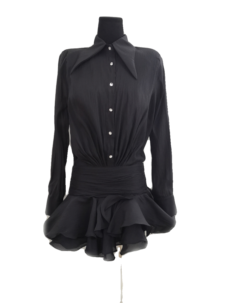 法式高级感荷叶边白色衬衫连衣裙女2024新款设计感短款仙女辣妹裙