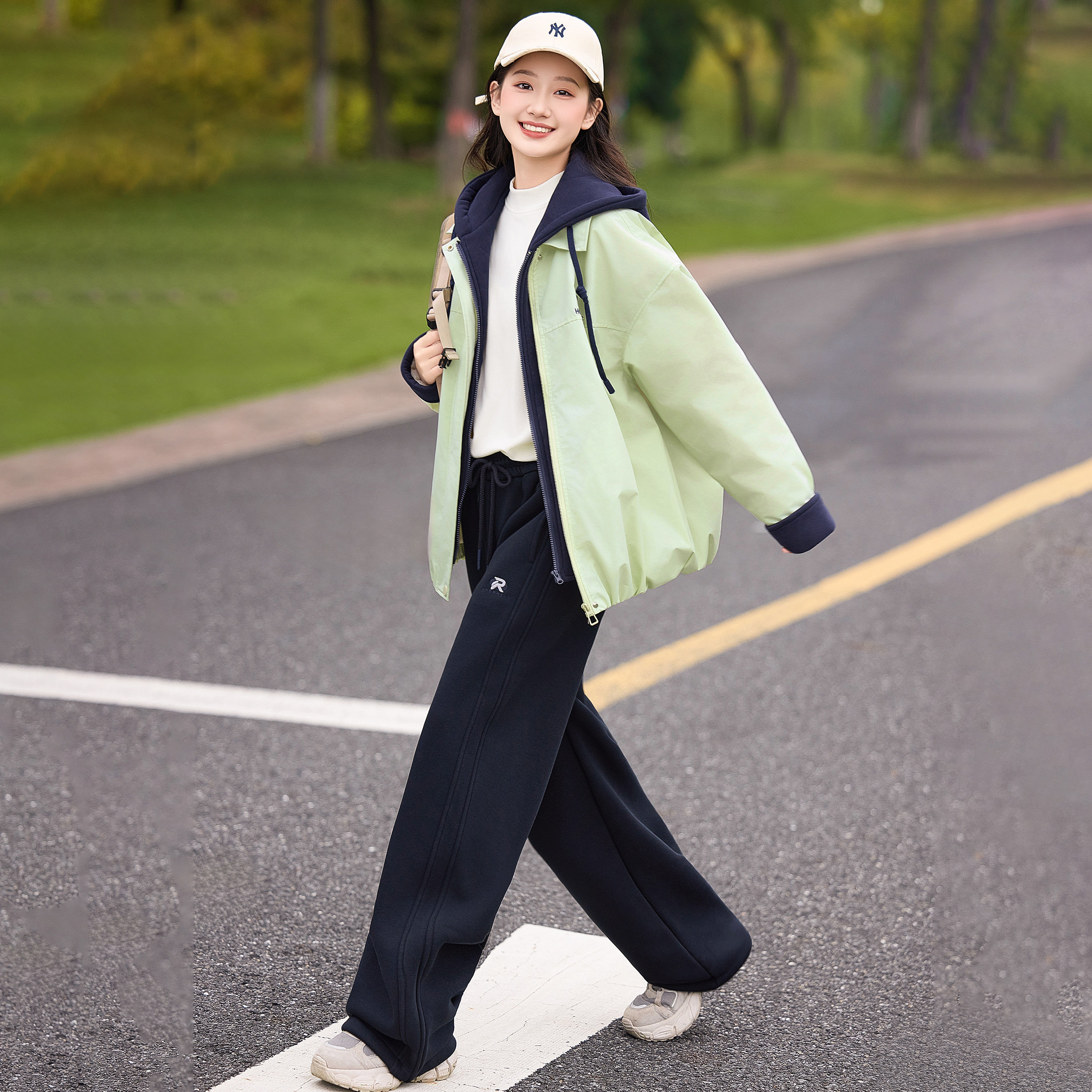 初中学生棉衣外套春装少女中长款冬装大童加厚棉袄高中青少年棉服