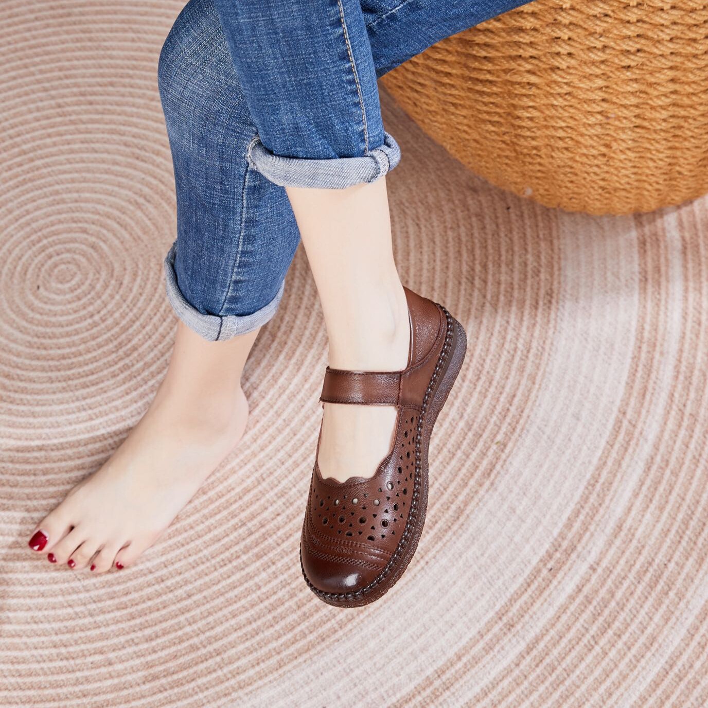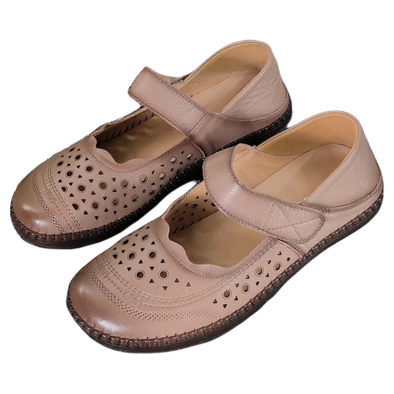 不累脚真皮软底妈妈鞋女2026春夏新款平底凉鞋女透气防滑轻便女鞋
