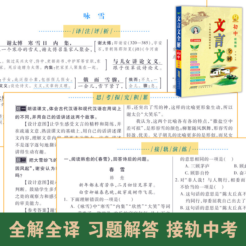 2026初中文言文完全解读语文文言文全解一本通译注赏析必备古诗文7-9七年级8八九中考上下册初一二三教材辅导资料人教版习题答案