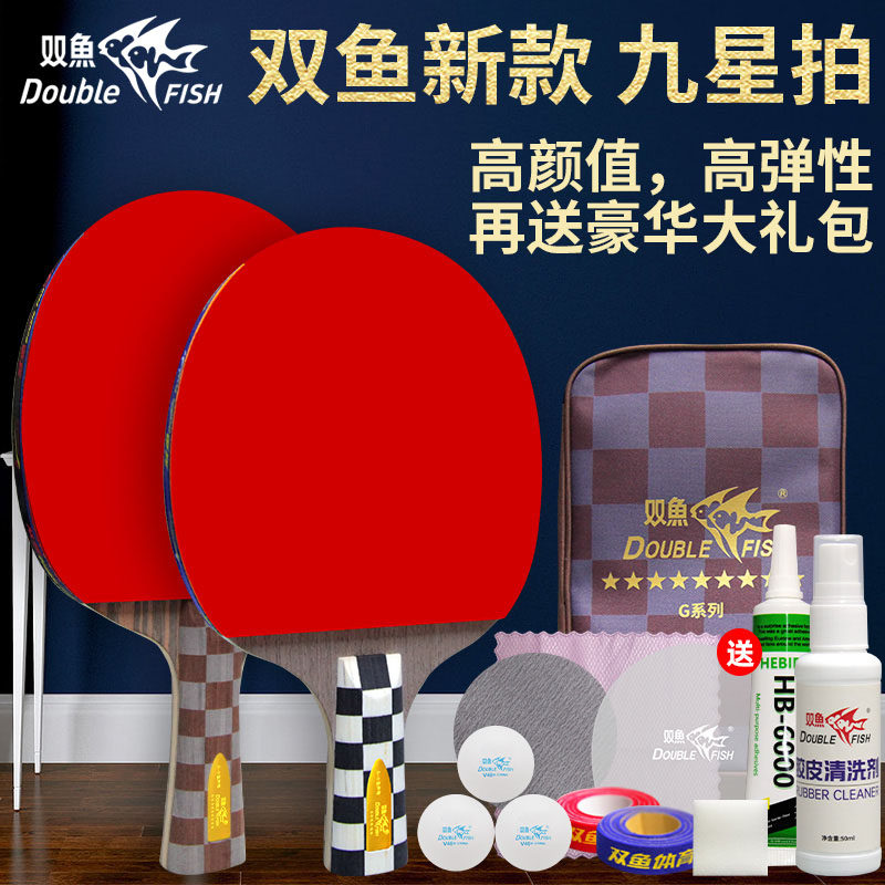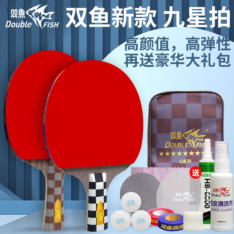 双鱼乒乓球拍6星初学者乒乓拍单拍9星小学生专用兵乓球拍横拍长柄
