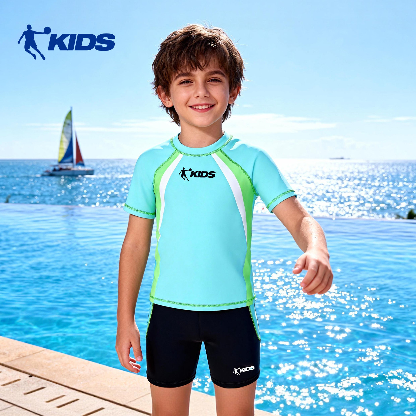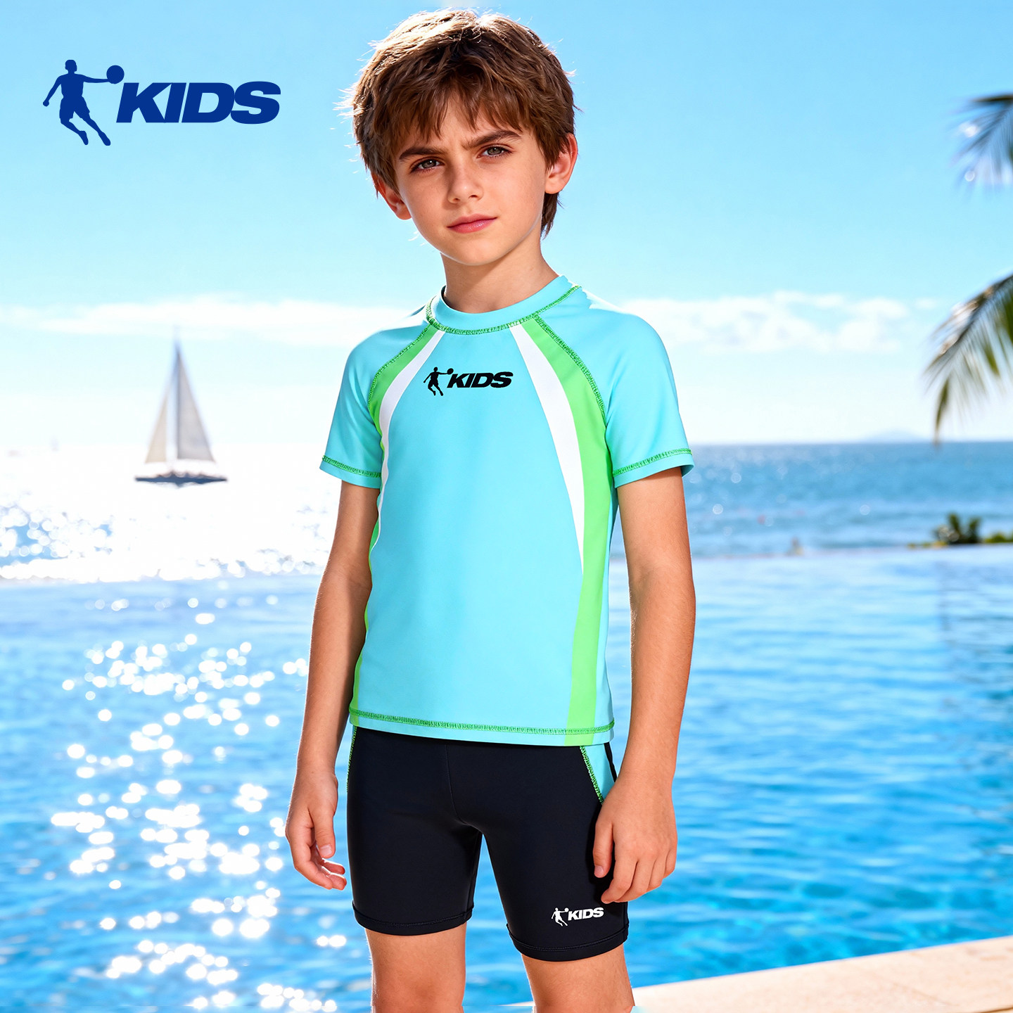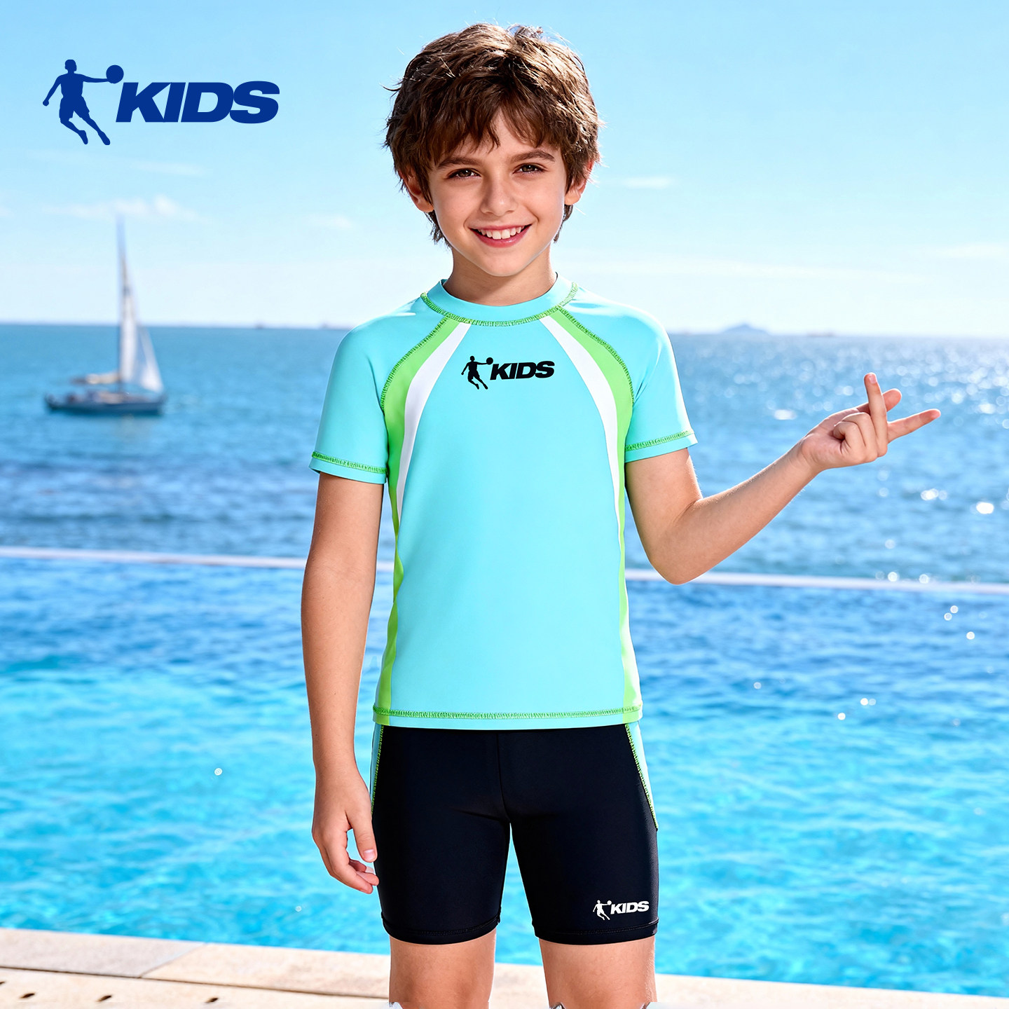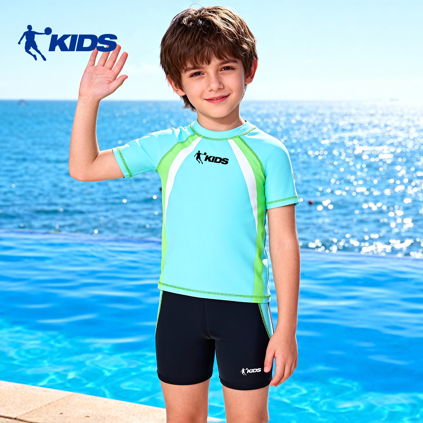 乔丹2026新品儿童泳衣男童分体短袖防晒速干撞色运动游泳衣套装