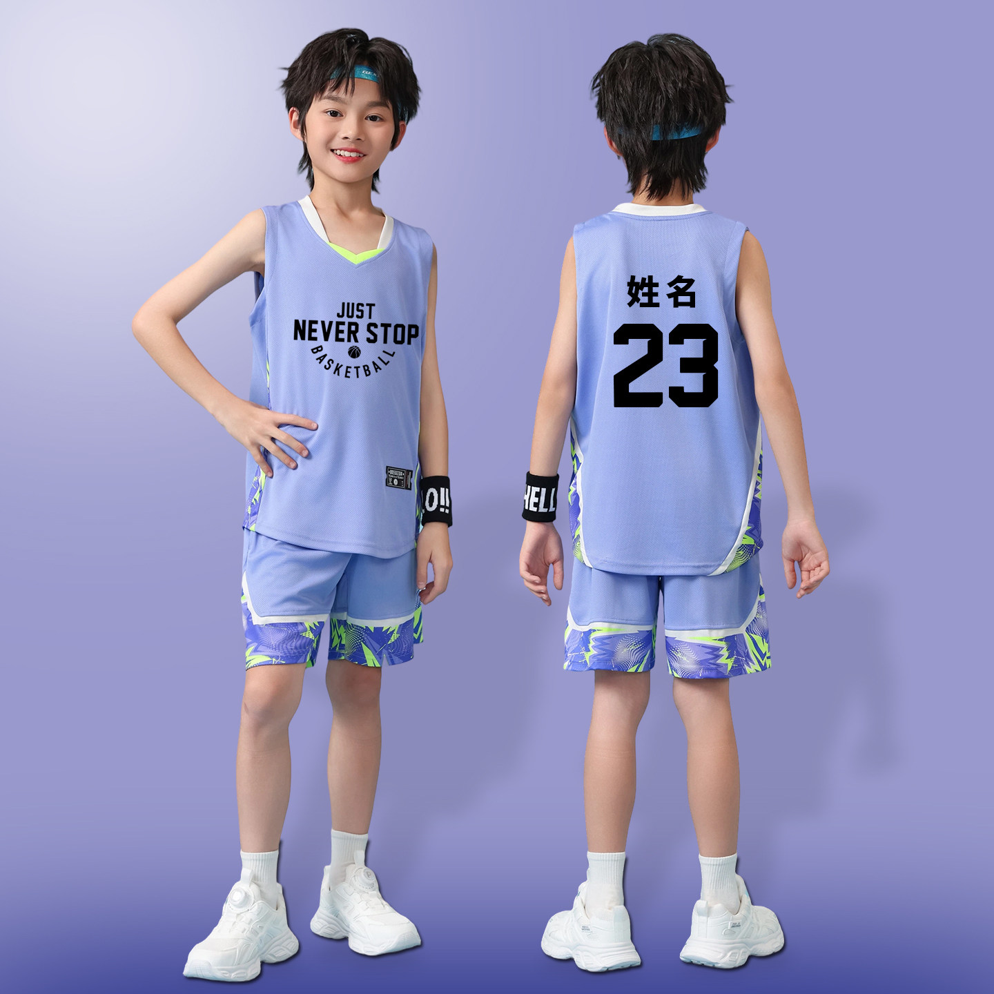 儿童篮球服套装定制男女小学生比赛球衣幼儿园透气比赛队服紫色夏
