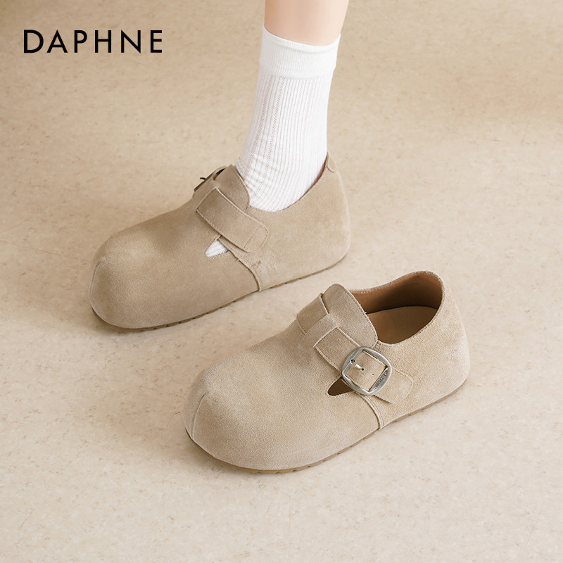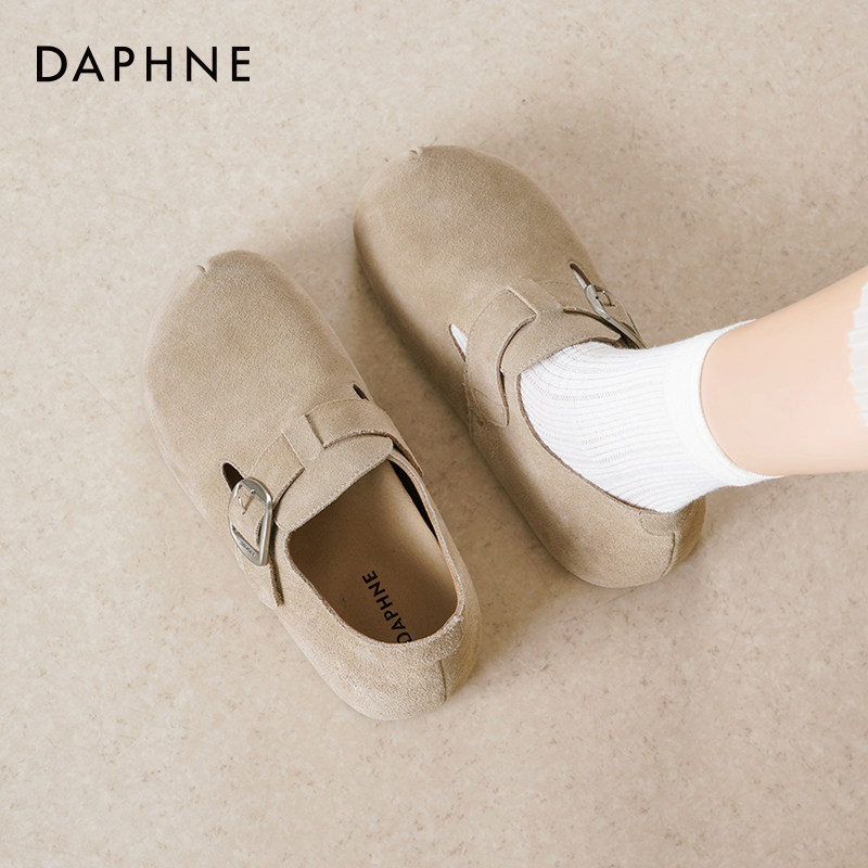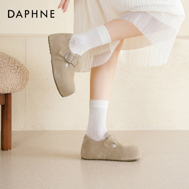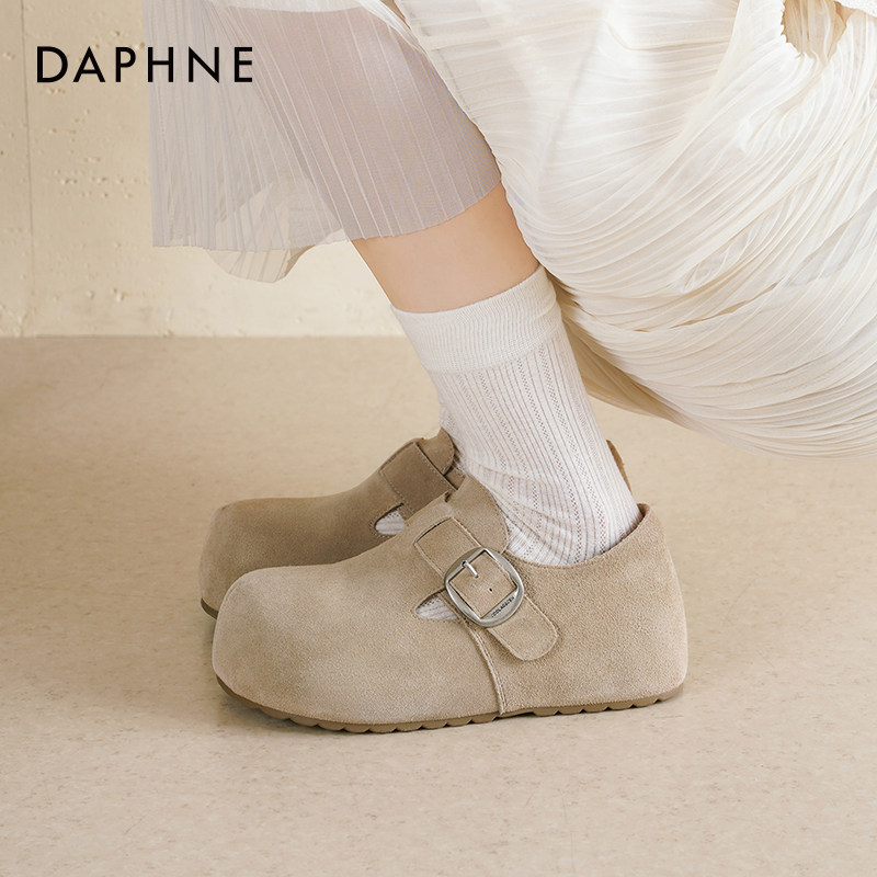 达芙妮厚底勃肯鞋女2026新款春季爆款一脚蹬真皮鞋子女款灰色单鞋