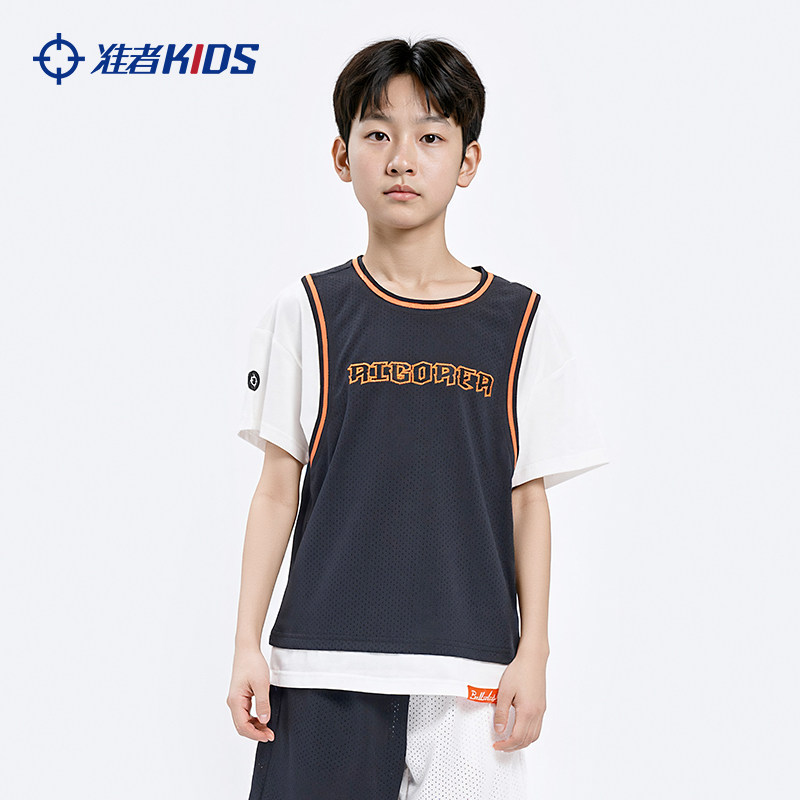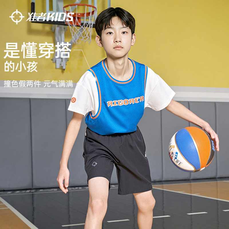 准者儿童篮球服假两件运动背心2026新款夏季学生比赛服训练短袖T