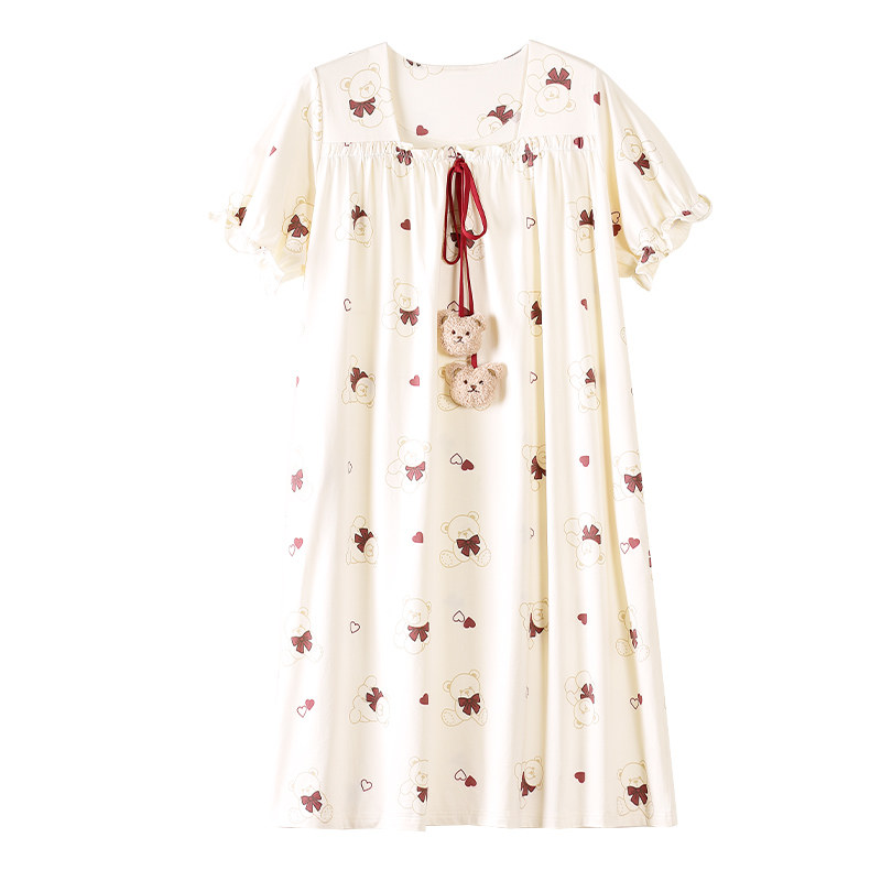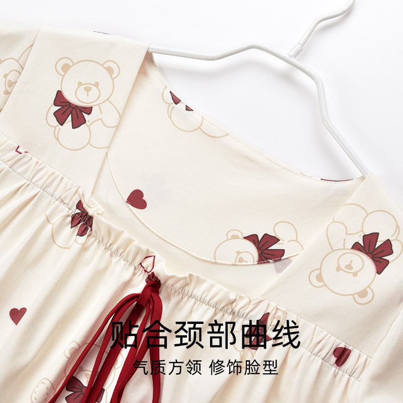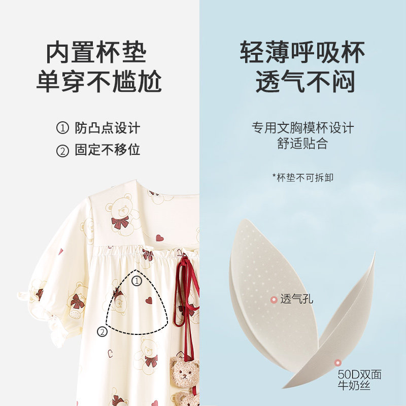 睡裙女士夏季纯棉短袖2026新款夏天睡衣带胸垫可爱甜美长款连衣裙