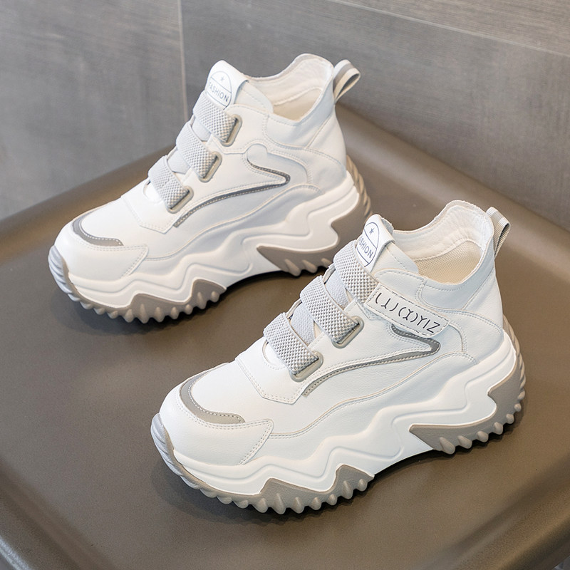 温州真皮内增高女鞋春夏新款网面透气坡跟不累脚8cm厚底休闲鞋子