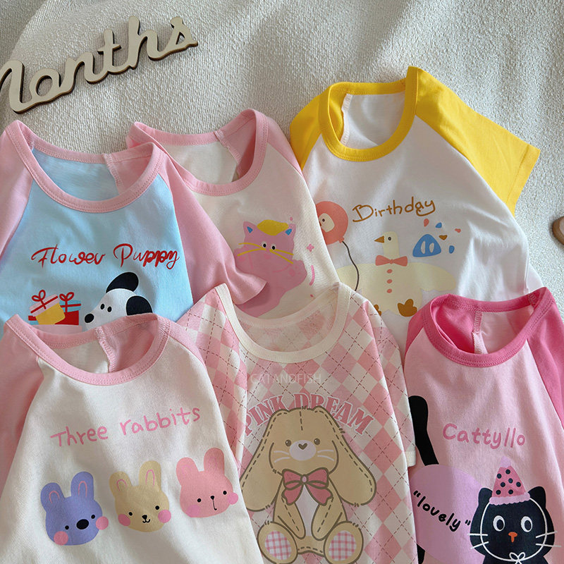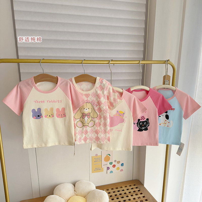 女童宝宝短袖T恤儿童婴儿半袖打底上衣中小童0-5岁外穿薄款睡衣夏