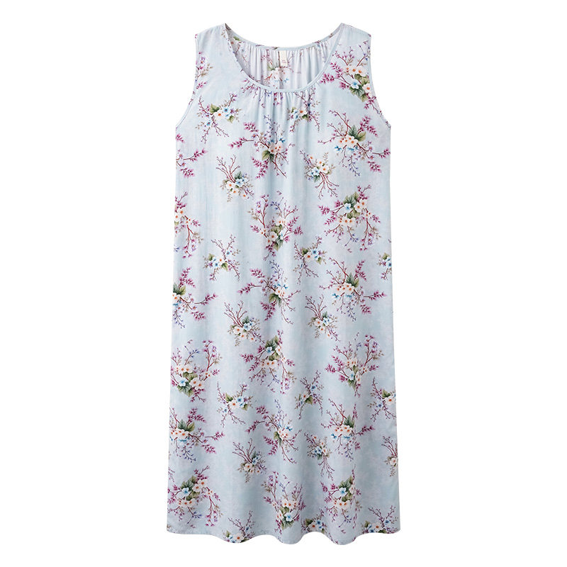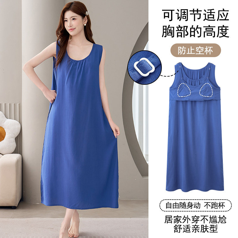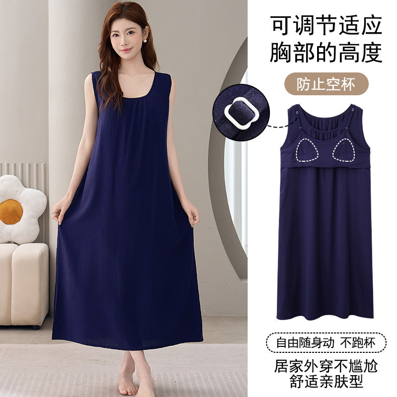 带胸垫背心吊带睡裙女春夏季棉绸中长款无袖人造棉防凸点睡衣坎肩