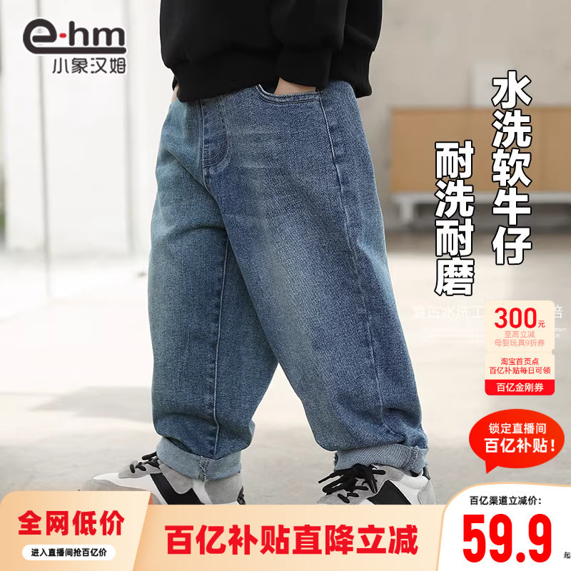 小象汉姆童装男童长裤儿童牛仔裤春款2026春装新款男孩裤子韩版