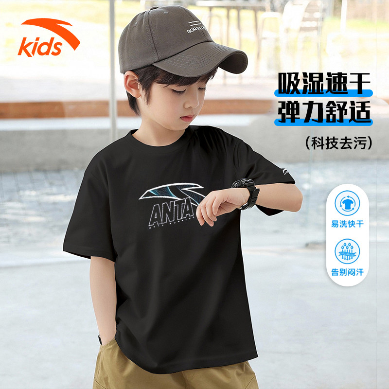 安踏儿童速干短袖T男童2026夏季新品冰丝透气运动上衣时尚T恤衫