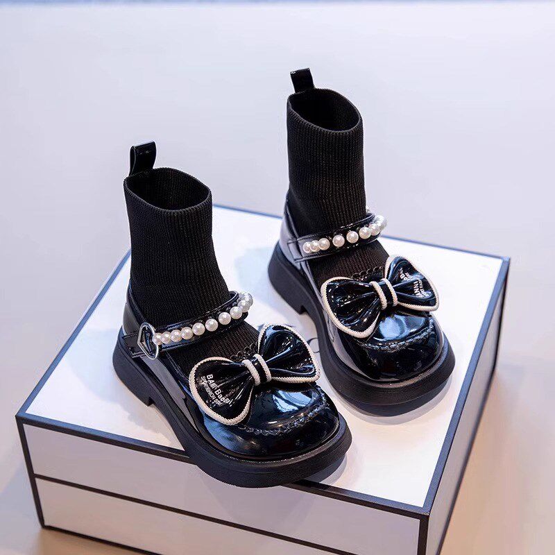 真皮女童鞋公主马丁靴2024秋冬新款女孩袜靴儿童软底短靴加绒皮鞋