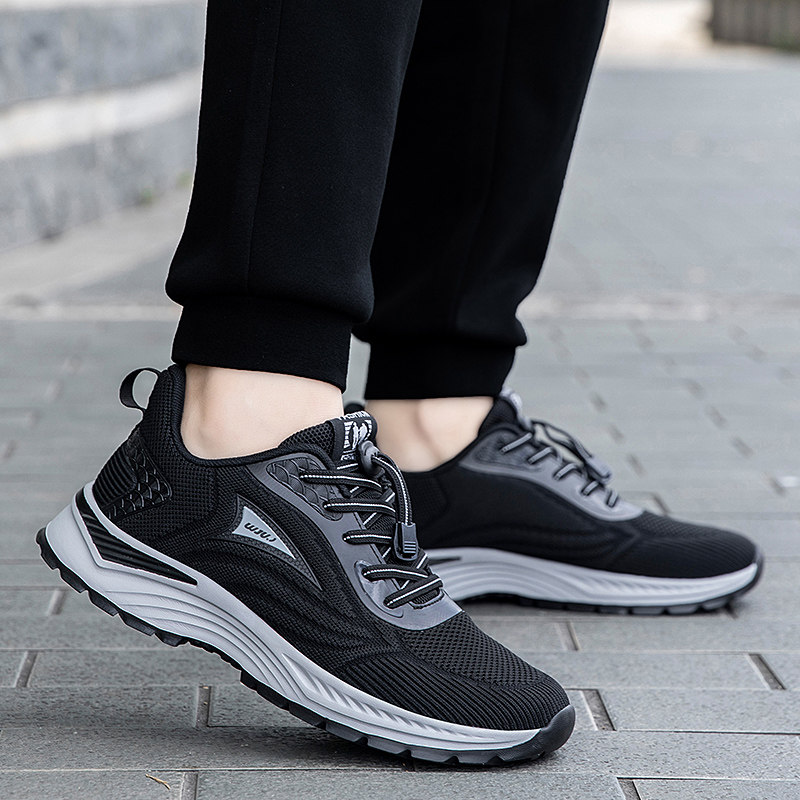 老人鞋爸爸鞋春秋款中老年男士休闲鞋黑色减震轻便跑步运动鞋男款