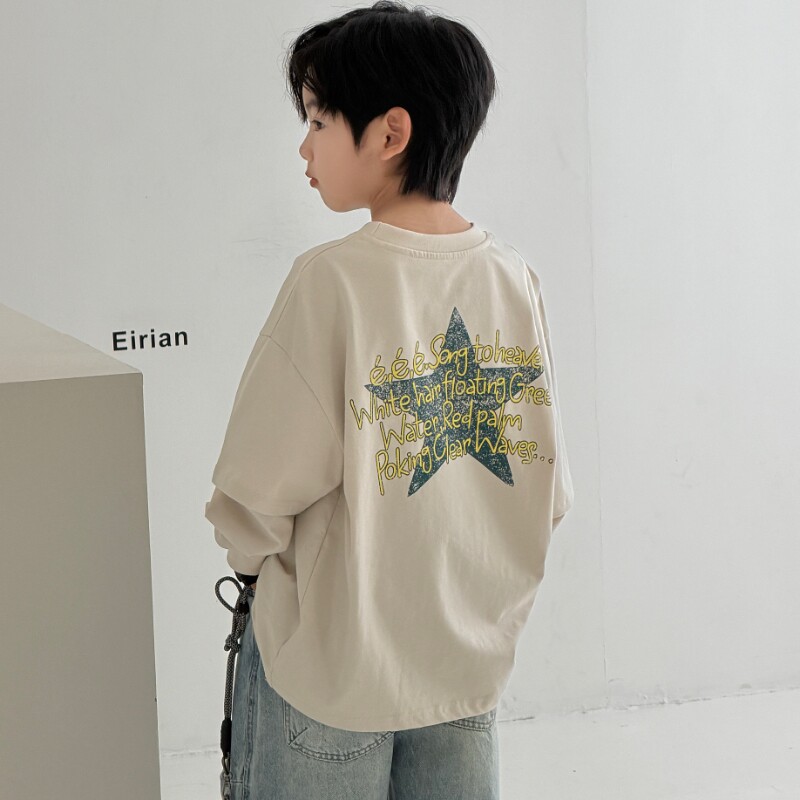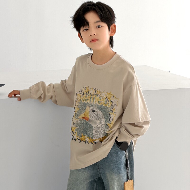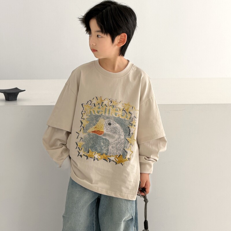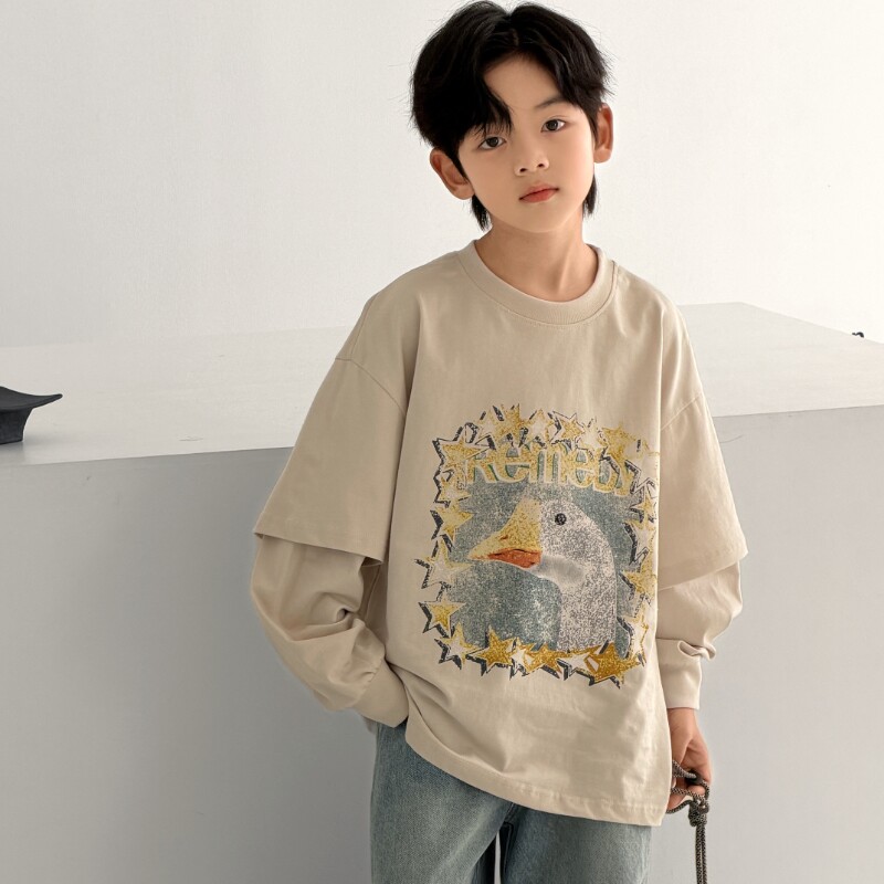 儿童装男童春秋款假两件t恤长袖2026新款大童男孩痞帅春装上衣潮