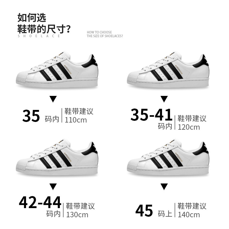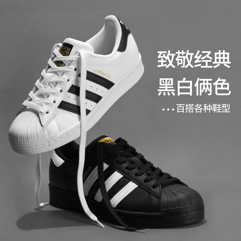 适配阿迪贝壳头三叶草鞋带男女款扁平百搭板鞋帆布鞋黑白色鞋带绳