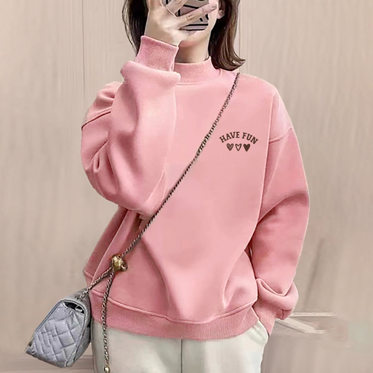 新品胖mm加绒加厚卫衣女款春秋2026新款半高领高级感宽松套头上衣