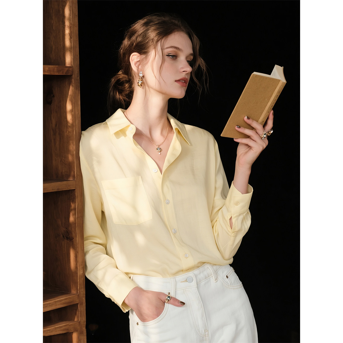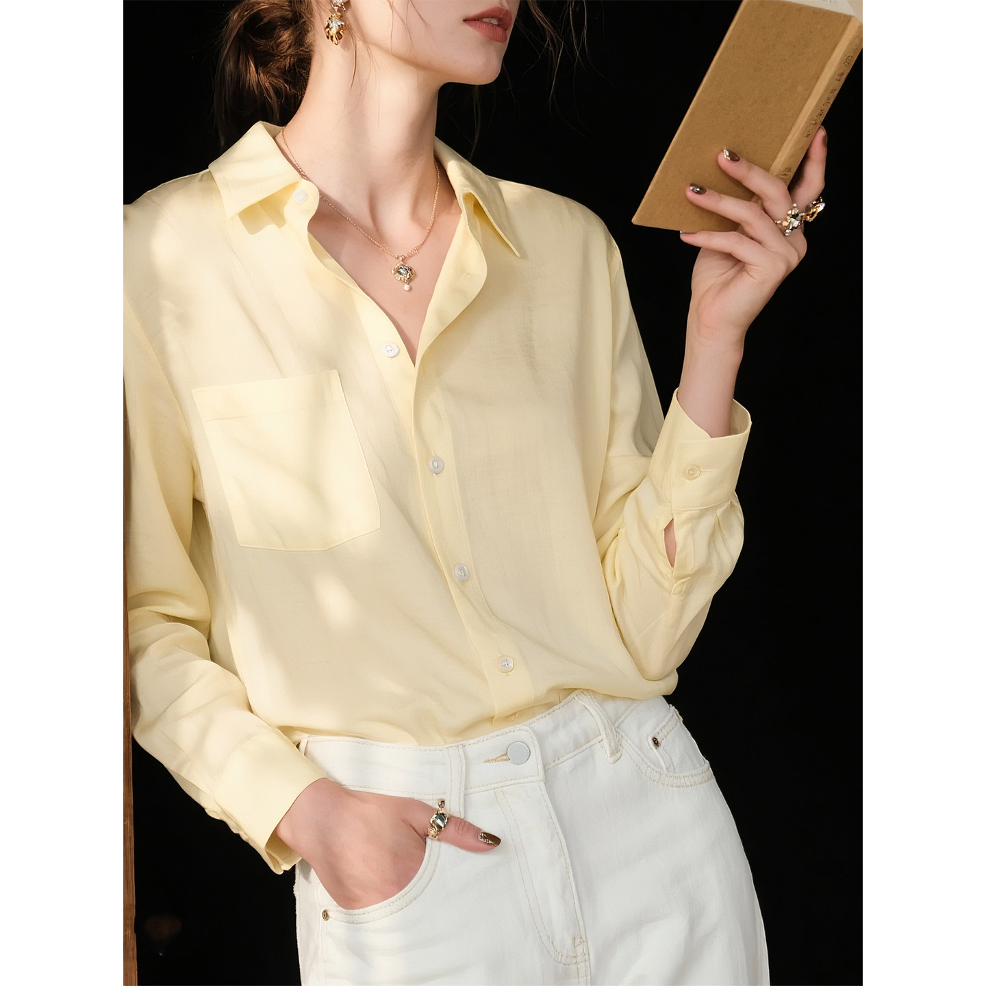 黄色纯棉衬衫女2026年春季新款内搭叠穿衬衣轻奢高级感长袖上衣