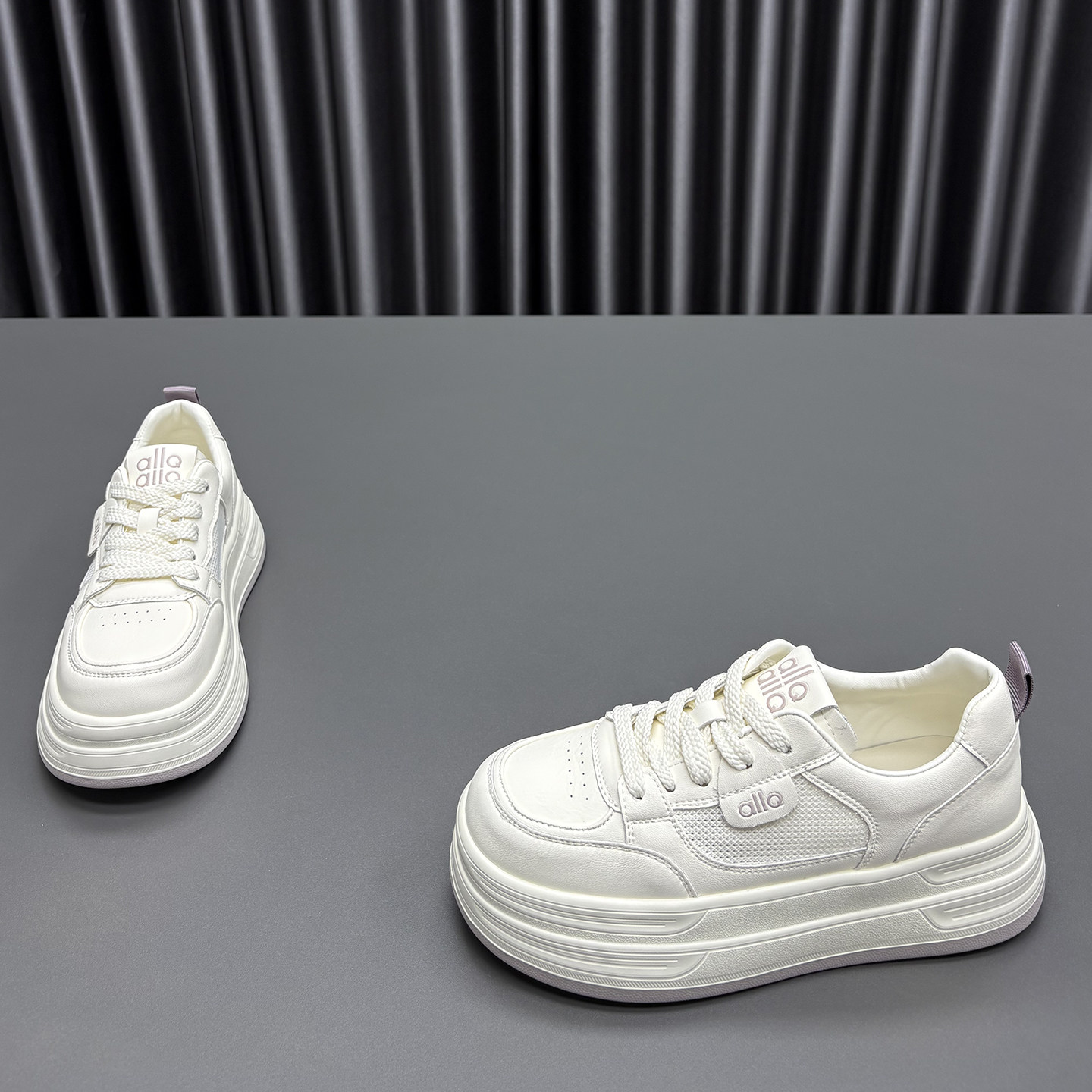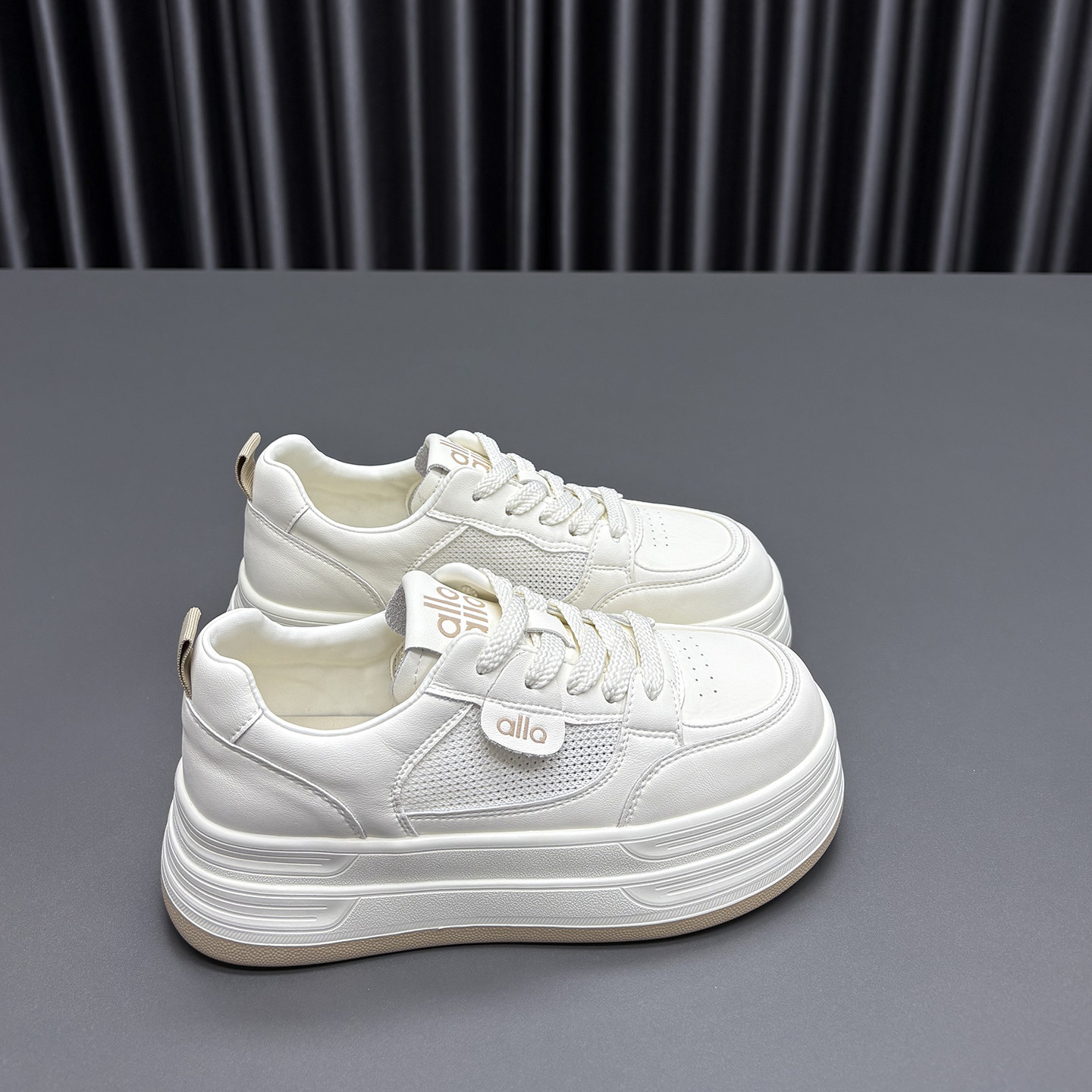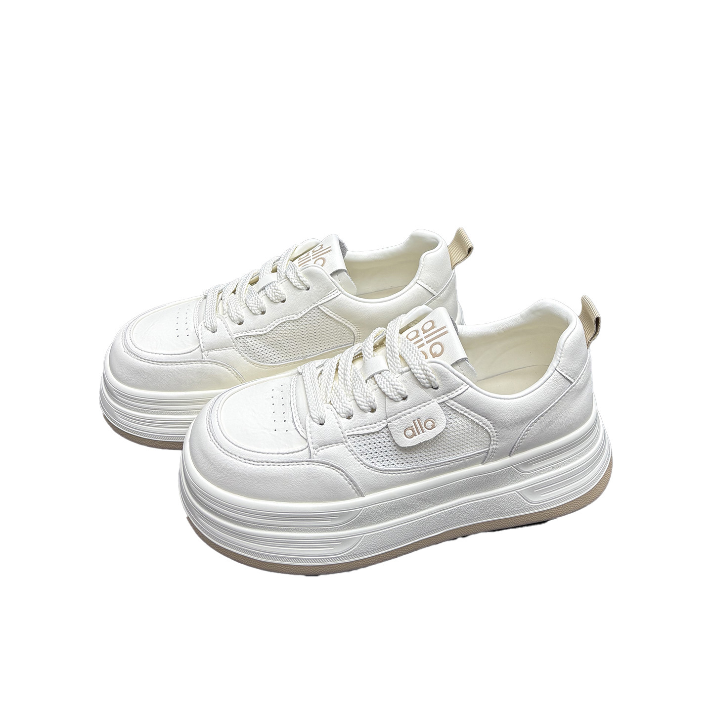 真皮网面小白鞋女2026春夏新款圆头厚底透气薄款牛皮休闲运动板鞋