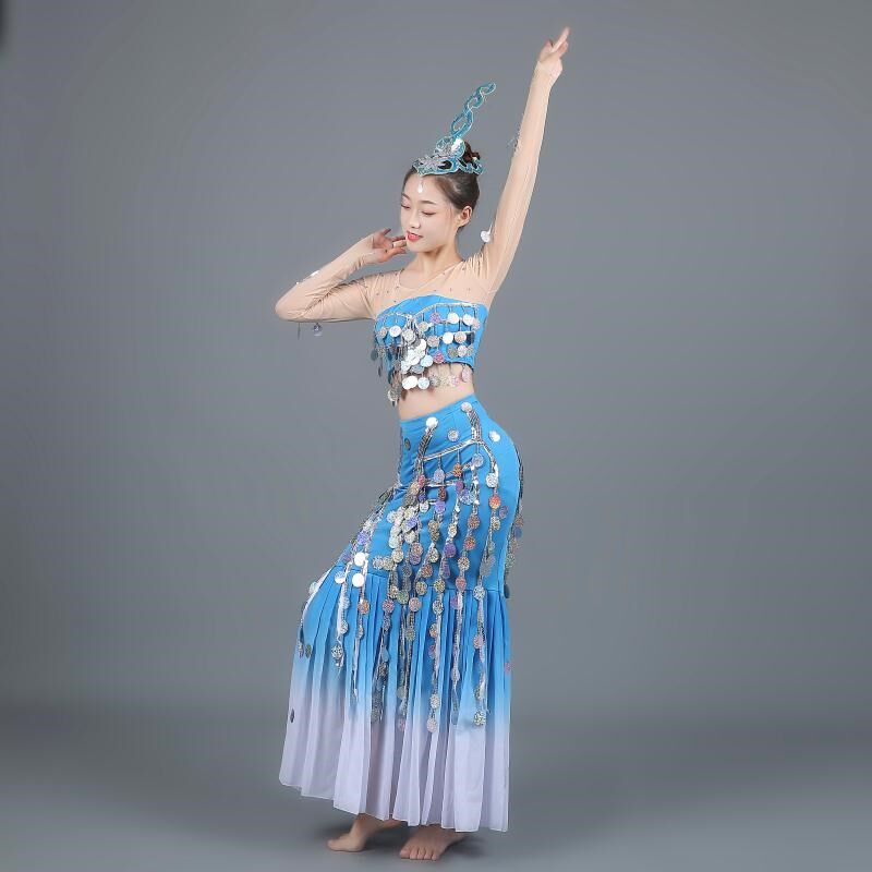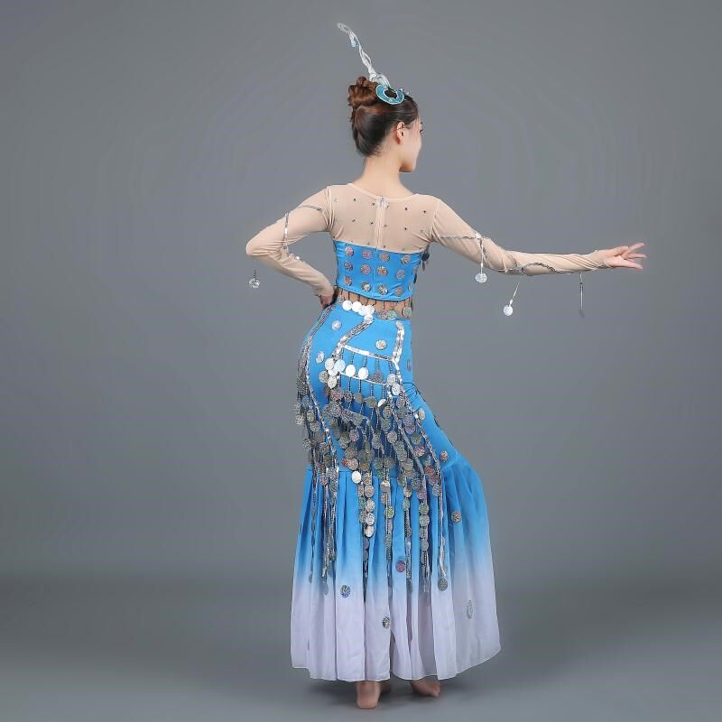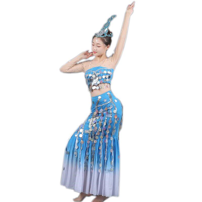 极速新款傣族舞蹈服装演出服水z之灵舞蹈孔雀舞女成人表演服亮片