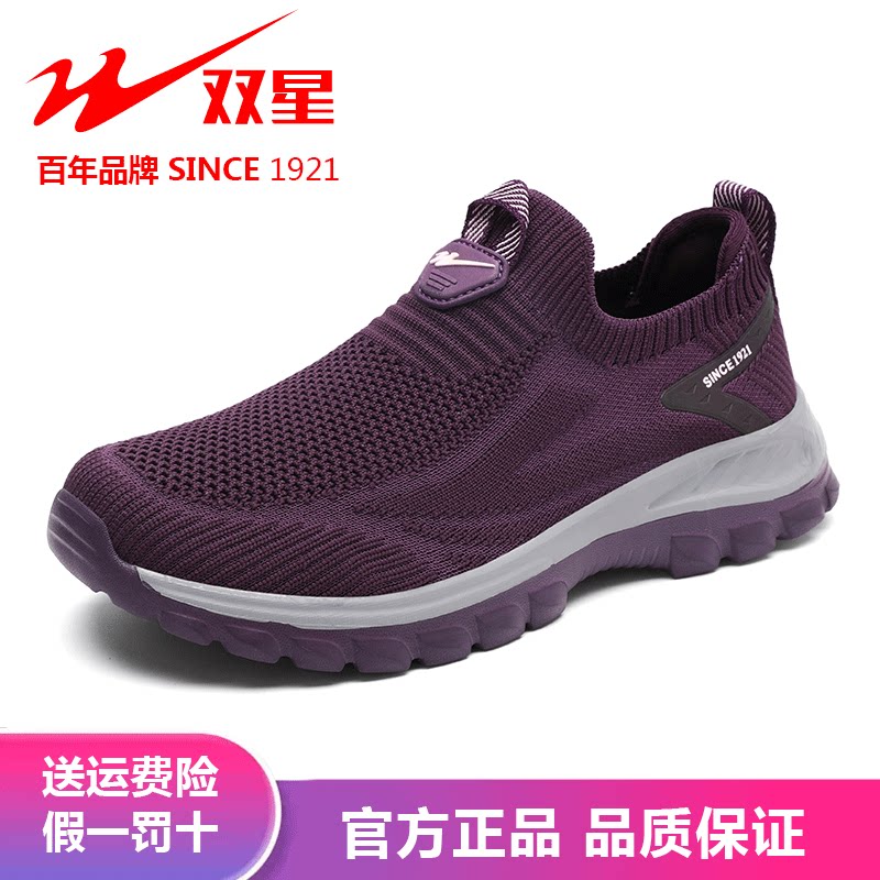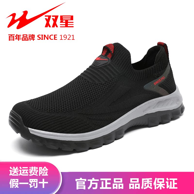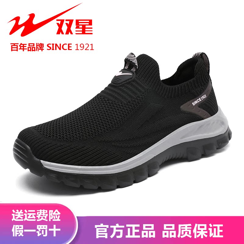双星网面男鞋正品男士一脚蹬网鞋女防臭透气中老年健步鞋爸爸鞋子