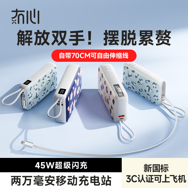 【充电宝3c认证可上飞机】冇心20000毫安充电宝快充大容量2026新款便携自带线适用华为苹果手机专用高铁火车