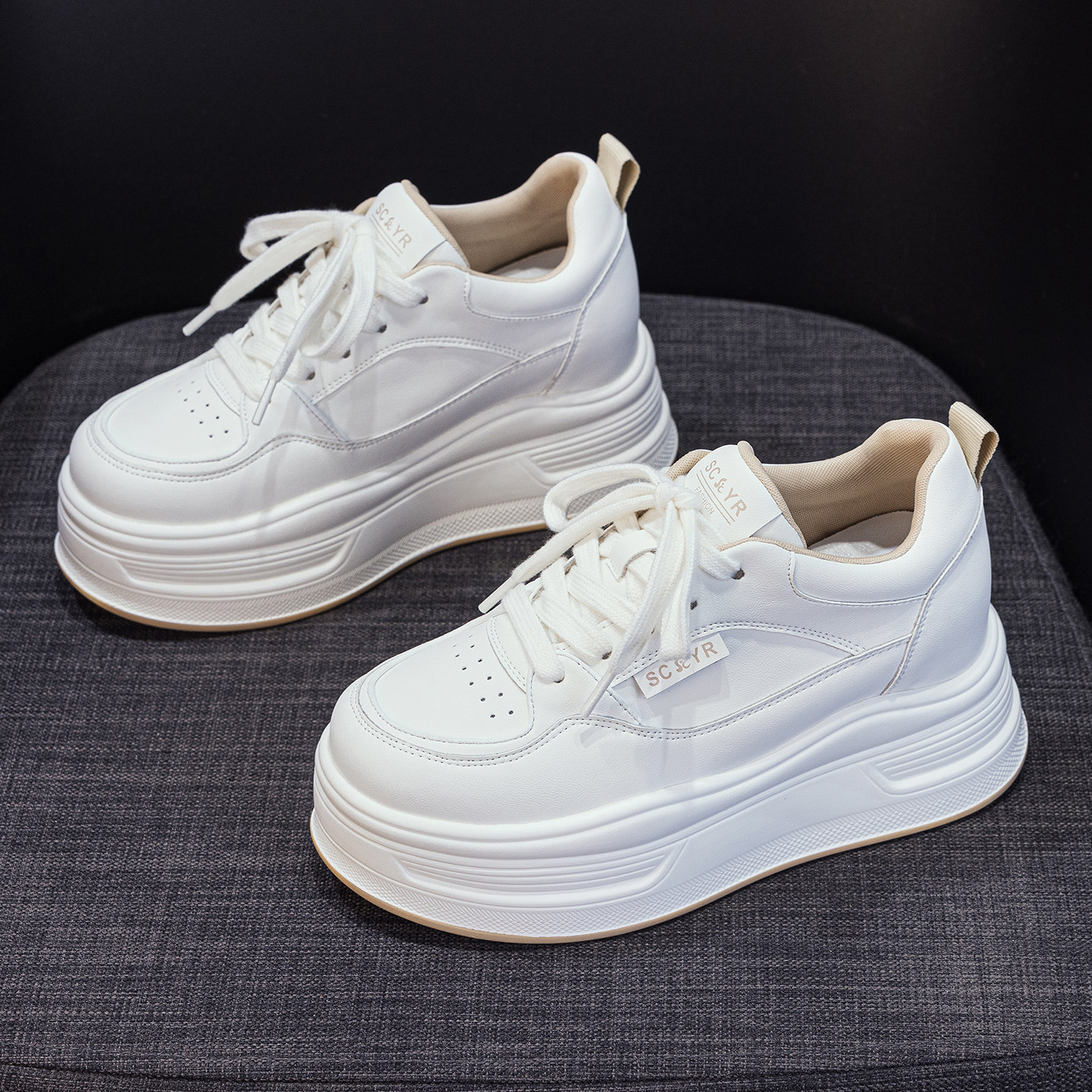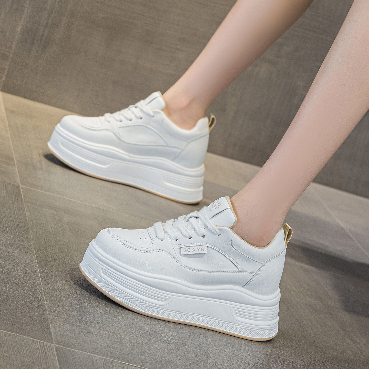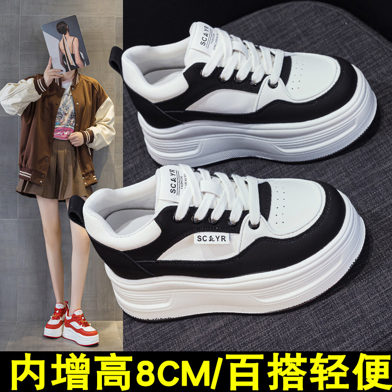 松糕8cm板鞋女轻便小个子2026春季新款红色厚底内增高小白鞋女鞋