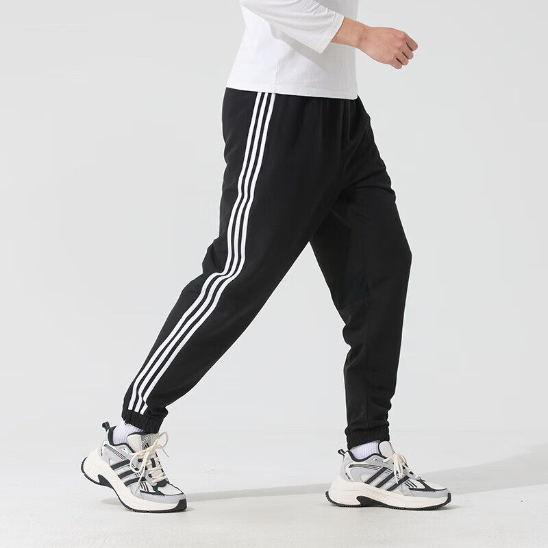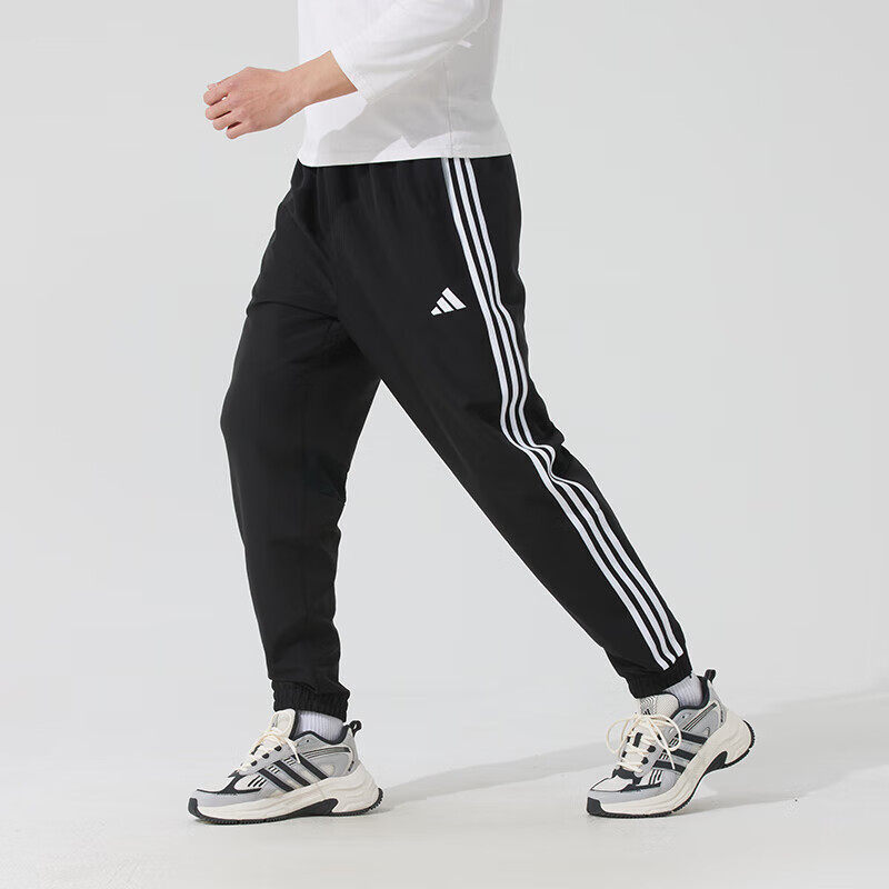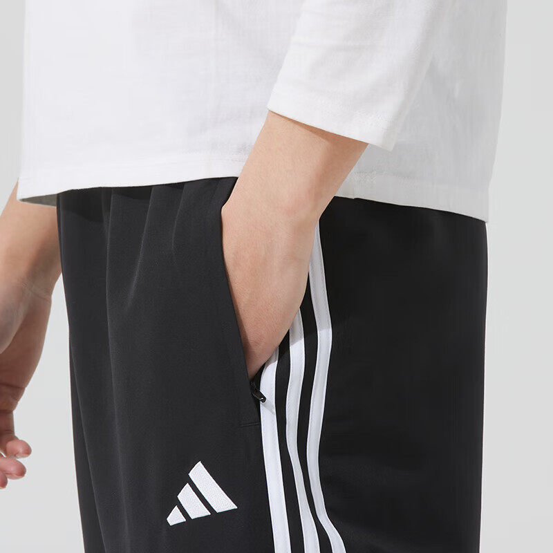 阿迪达斯裤子男夏季新款透气薄款速干健身跑步三条杠梭织束脚裤男