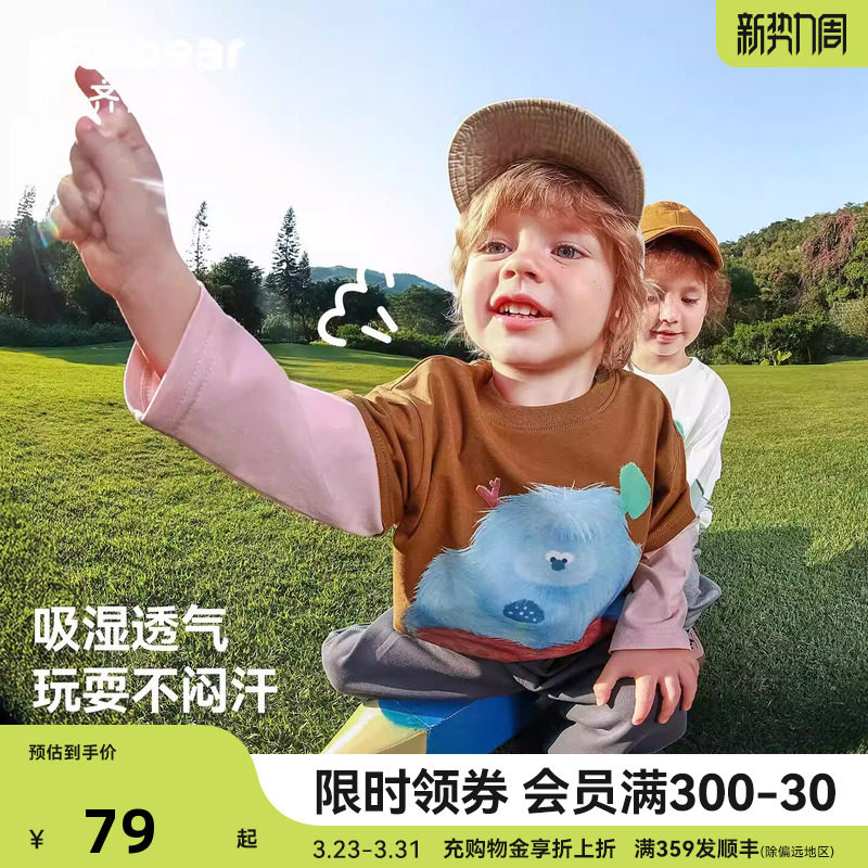[小魔怪2.0][10A抗菌]齐齐熊宝宝t恤长袖春装男童假两件儿童上衣