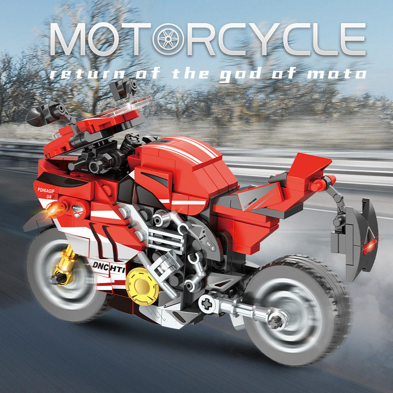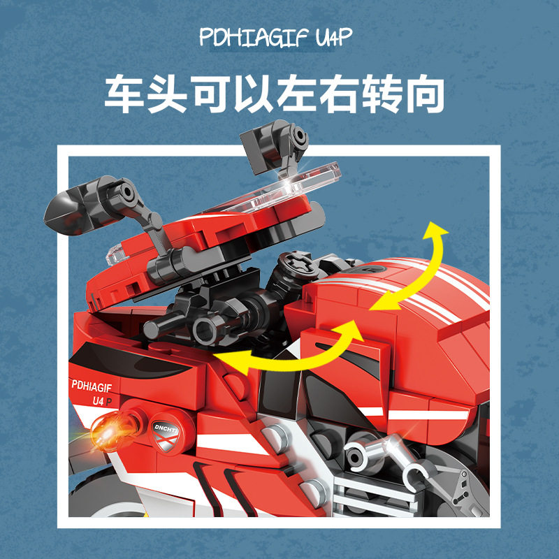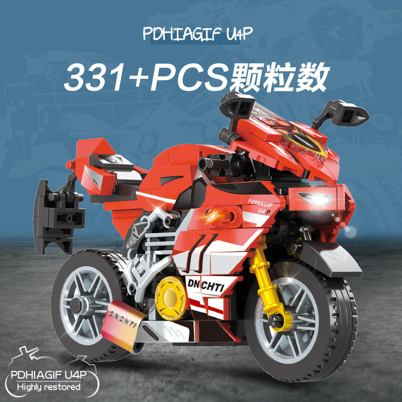 越野机车摩托车模型积木拼装玩具益智DIY拼插本田杜卡迪川崎摆件