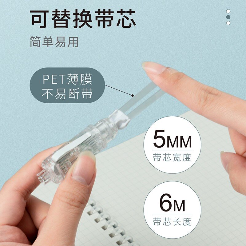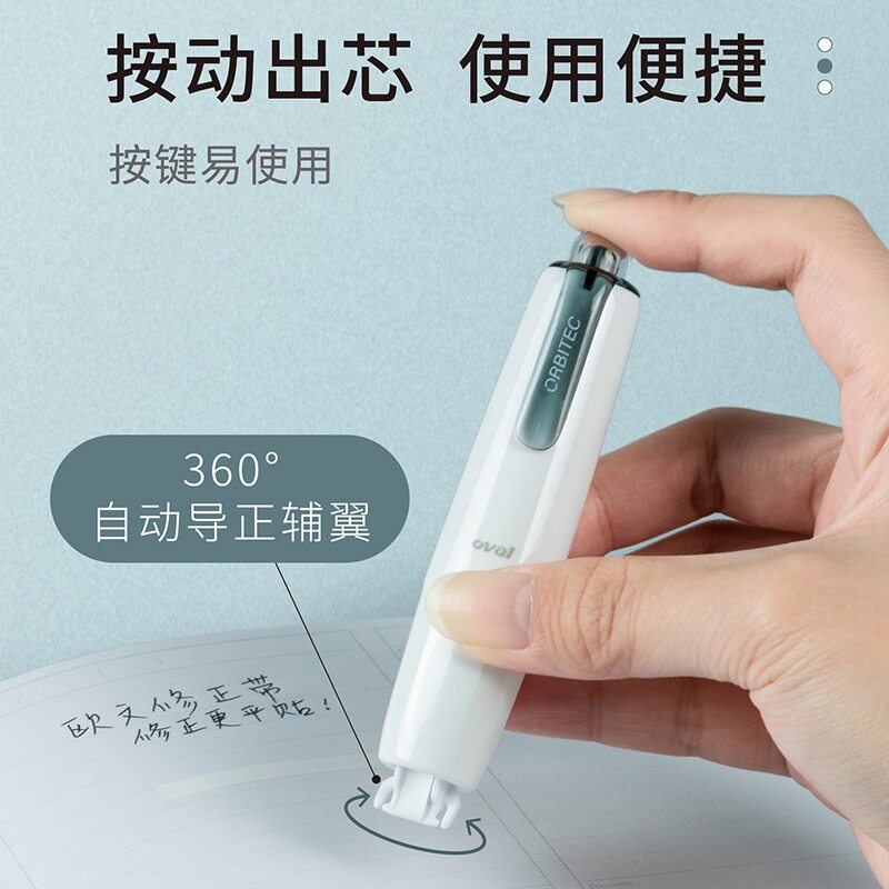 oval欧文修正带简约瓷白按动型涂改带可换替芯改正带大容量修正带