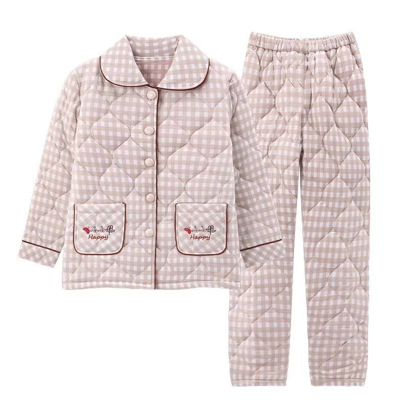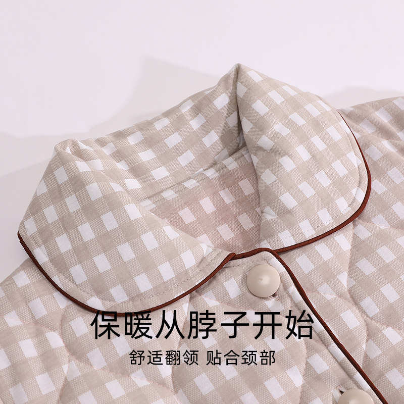 浪莎睡衣女款冬季加厚加棉纯棉三层夹棉袄保暖大码休闲家居服套装
