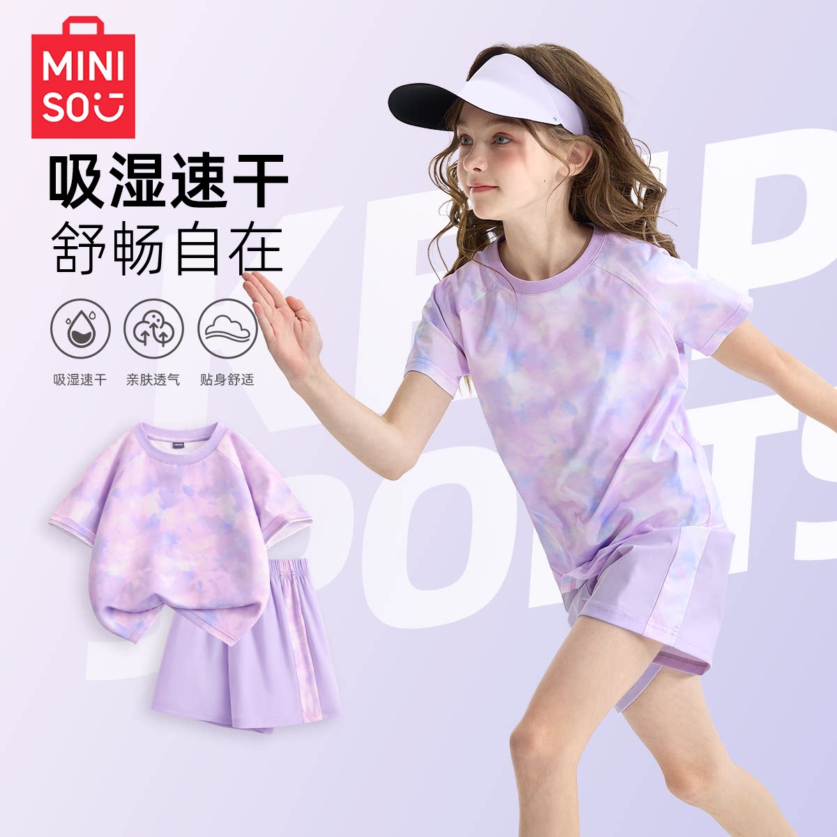 名创优品女童速干套装2026新款轻薄女孩运动服凉感儿童夏装两件套