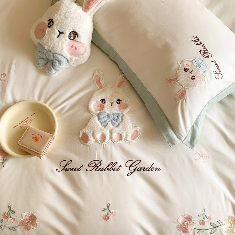 可爱少女心全棉四件套纯棉长绒棉卡通儿童高级感床上用品床单被套