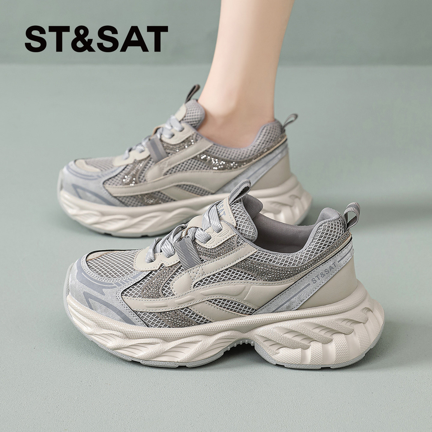 星期六厚底老爹鞋女2026新款今年流行爆款春季网面透气运动鞋女鞋