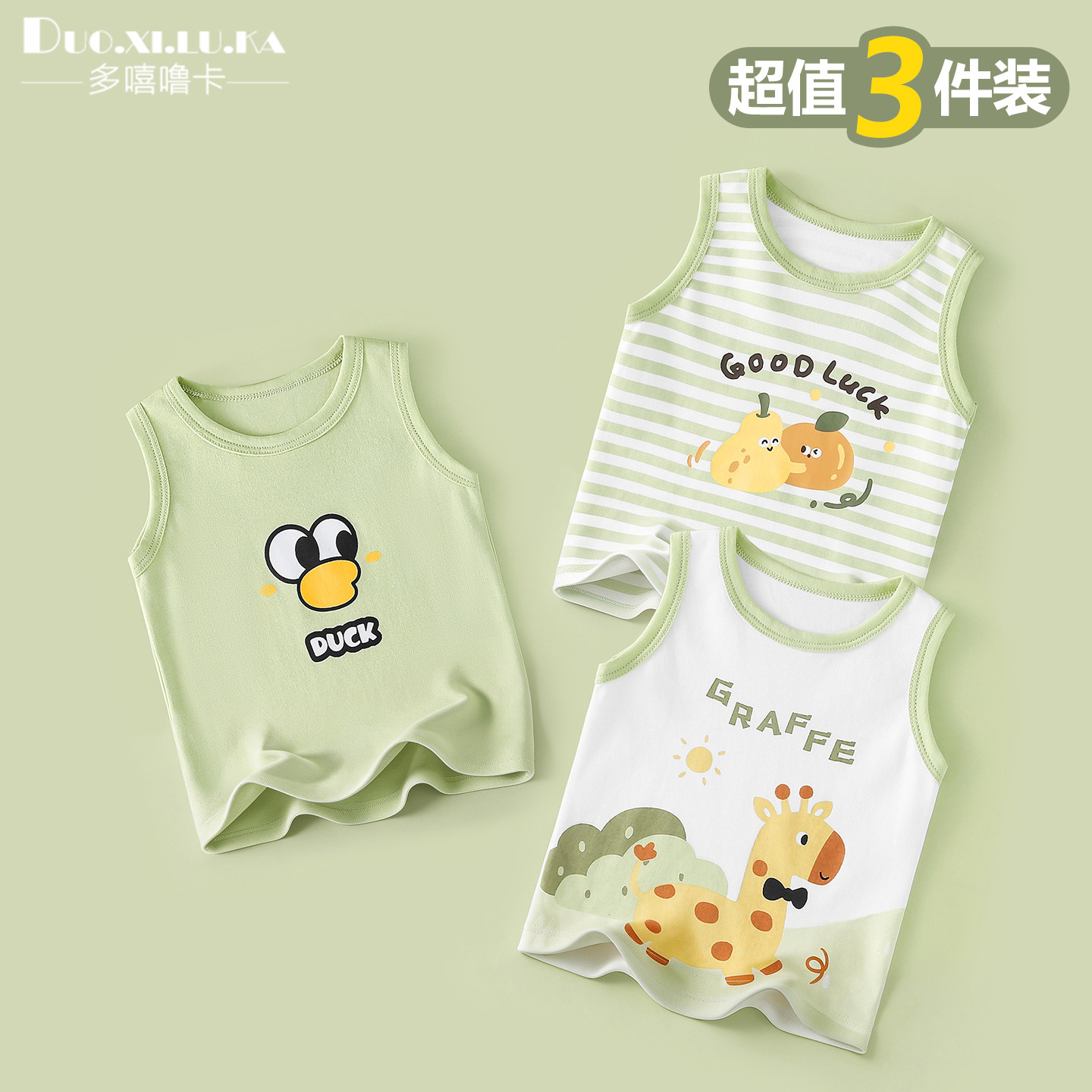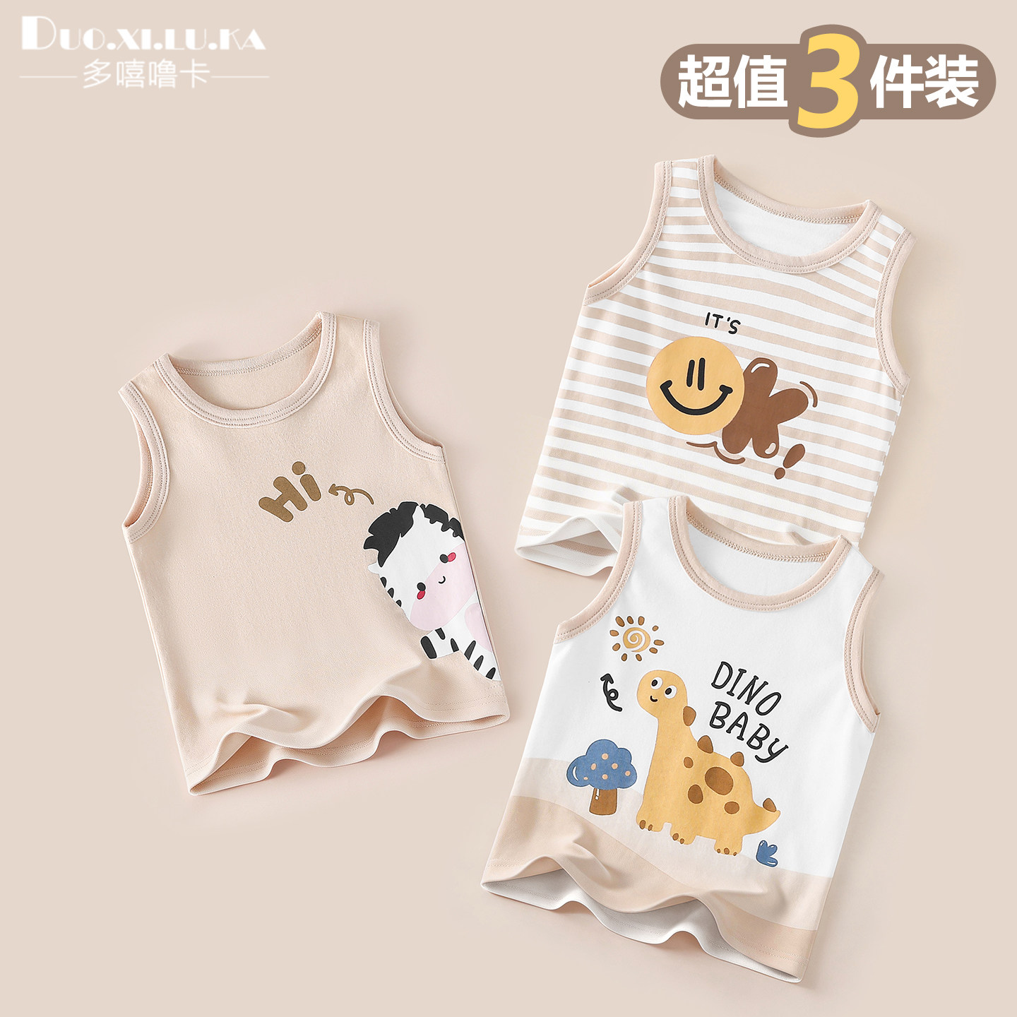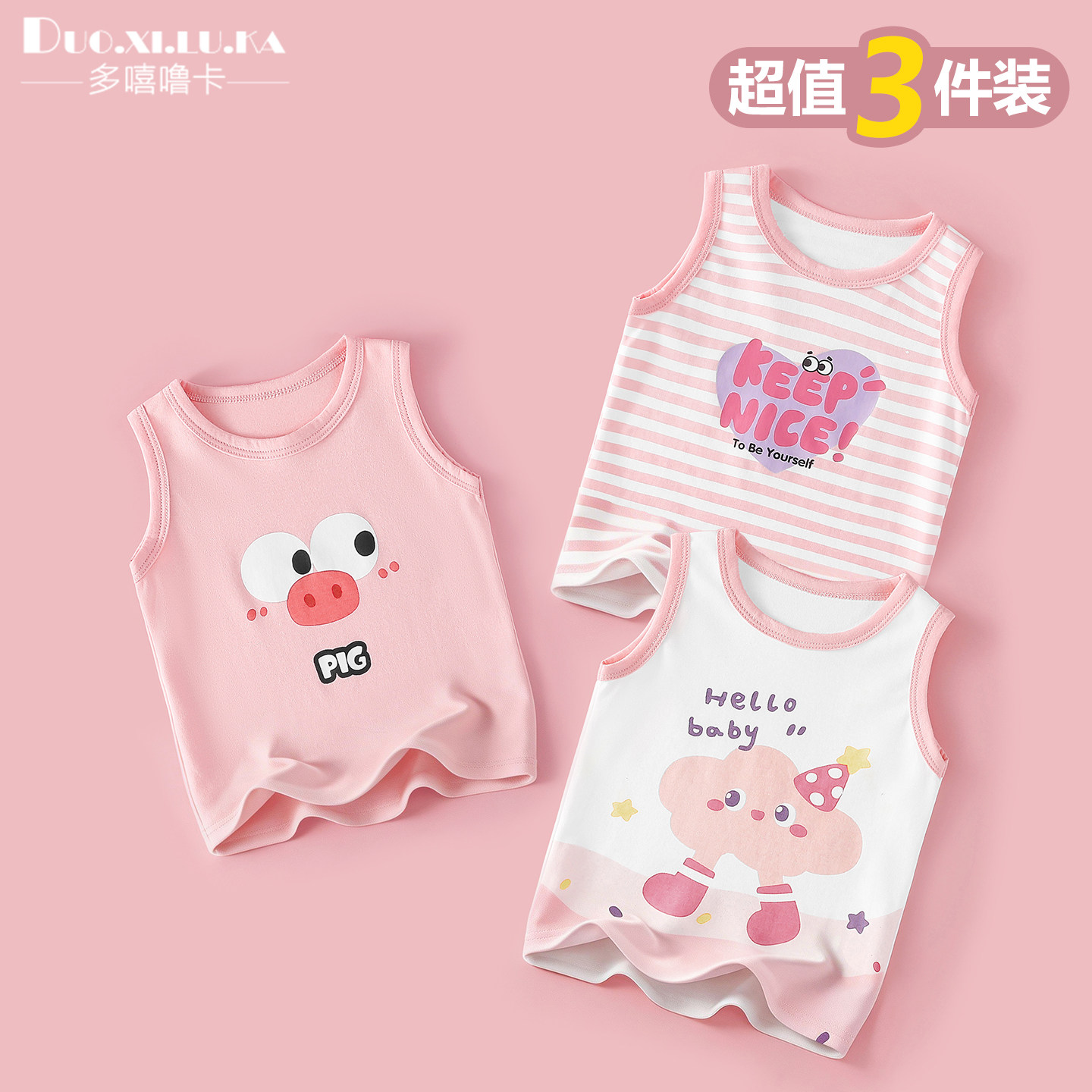 【3件装】婴儿背心夏季薄款a类纯棉男女童宝宝衣服幼儿童无袖上衣