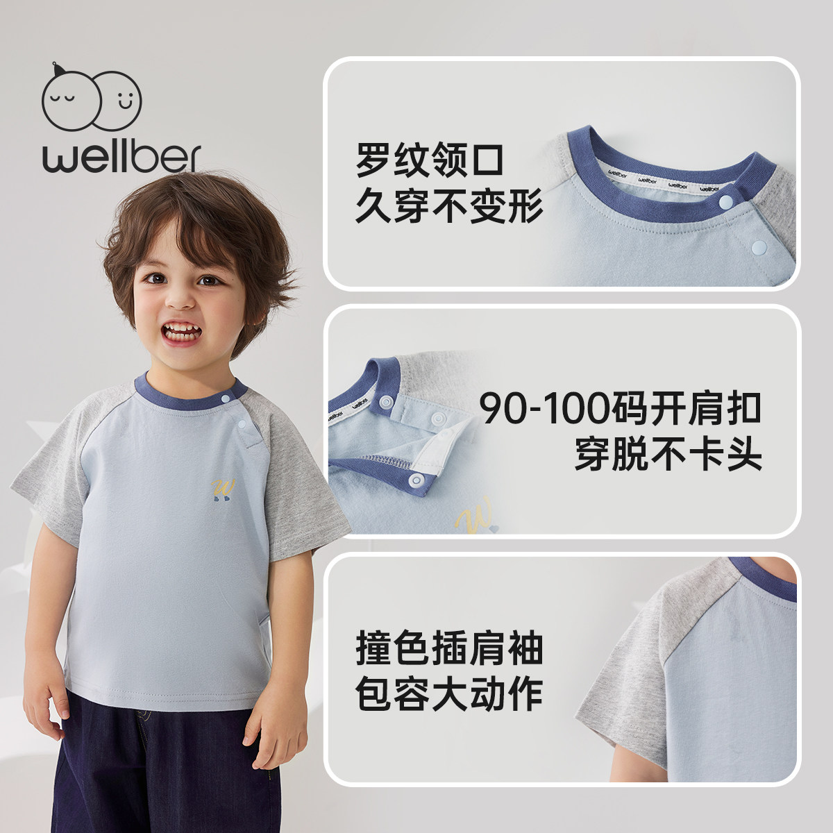 [纯棉]威尔贝鲁儿童短袖T恤夏装宝宝薄款上衣男女童夏季撞色短袖t