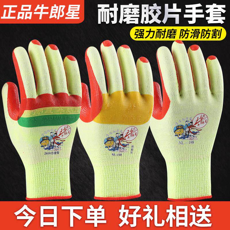牛郎星劳保手套软胶片劳保耐磨不烂加厚橡胶胶皮工作工地干活男女