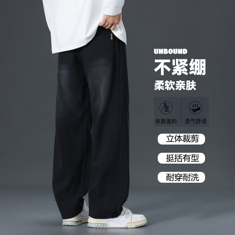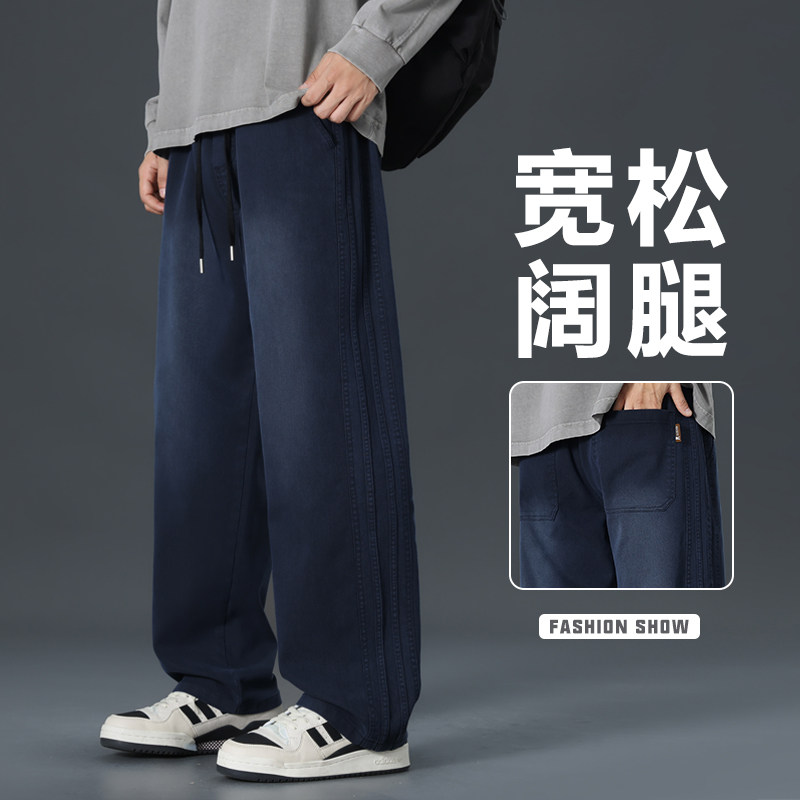 加绒牛仔裤男款2025秋冬新款青少年宽松直筒初中生休闲直筒长裤子