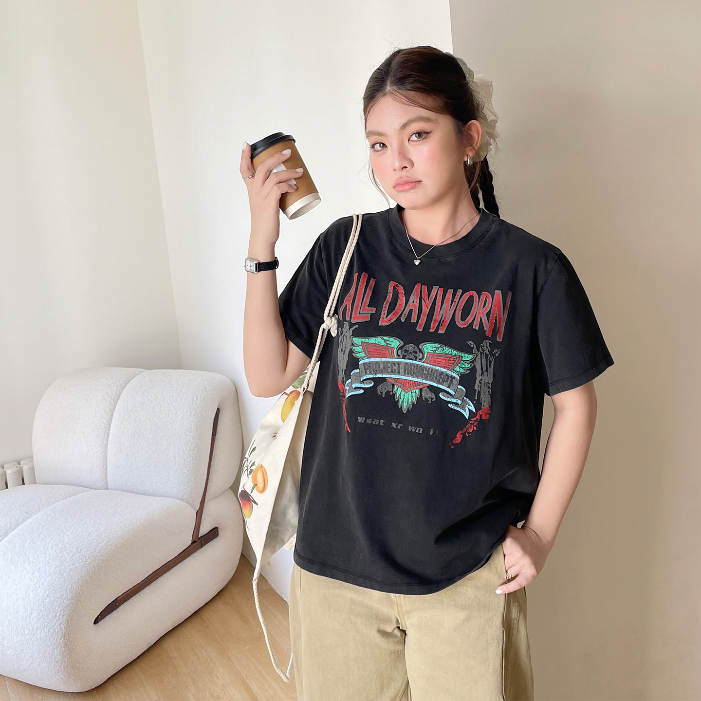大码春装女款2026超火减龄漂亮独特短袖上衣胖mm美式高街显瘦t恤