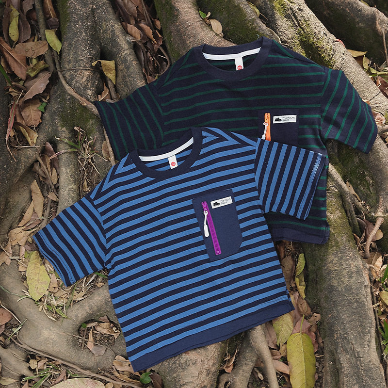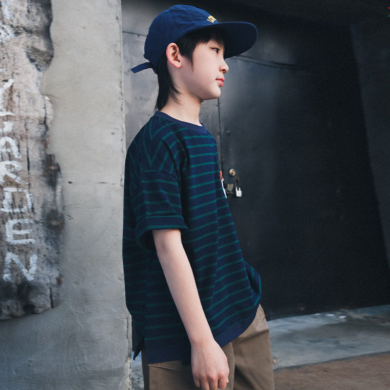 男童条纹短袖t恤26春装新款山系户外儿童撞色口袋短袖上衣半袖潮