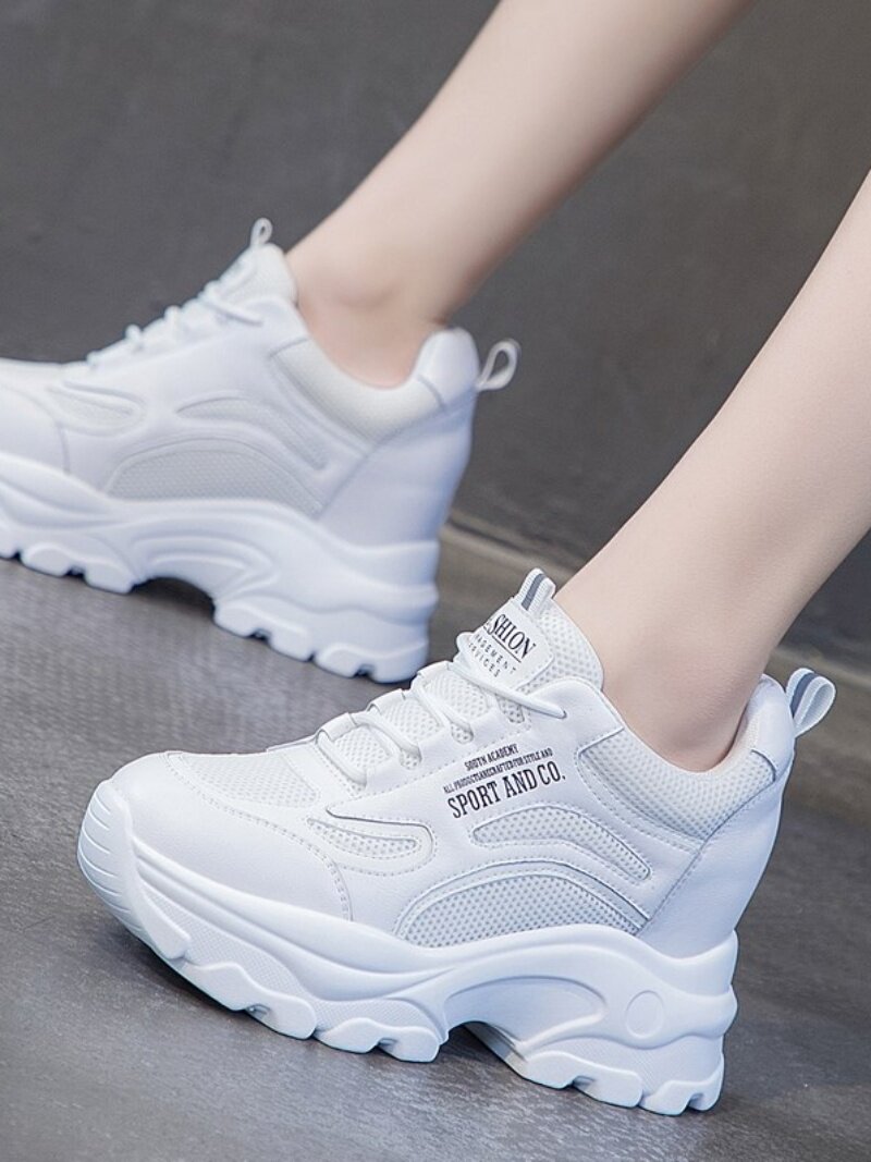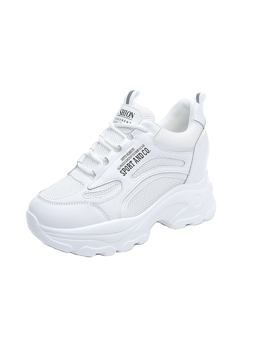 真皮纯白色老爹鞋内增高9CM头层牛皮休闲运动鞋软底轻便旅游鞋女