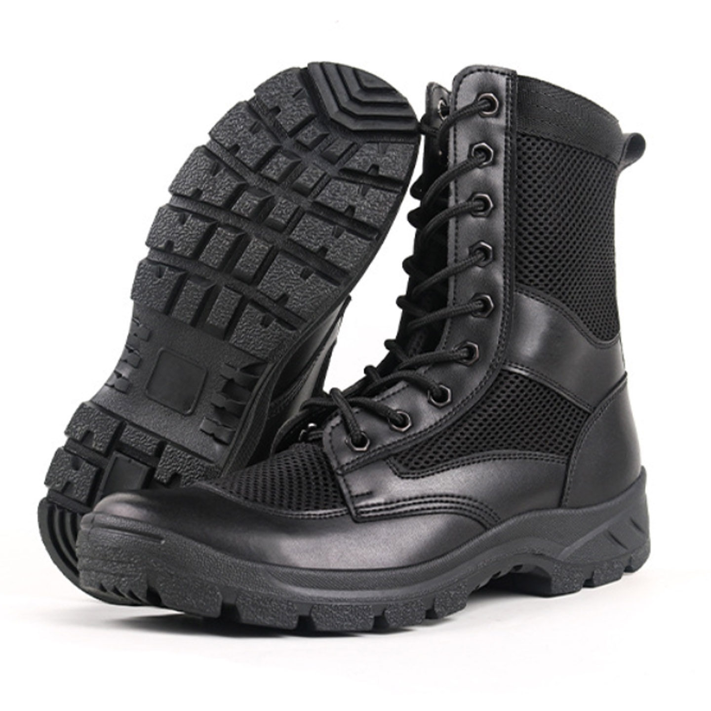 户外黑色作战靴男款夏季保安靴高帮战术靴透气网眼训练靴超轻防滑