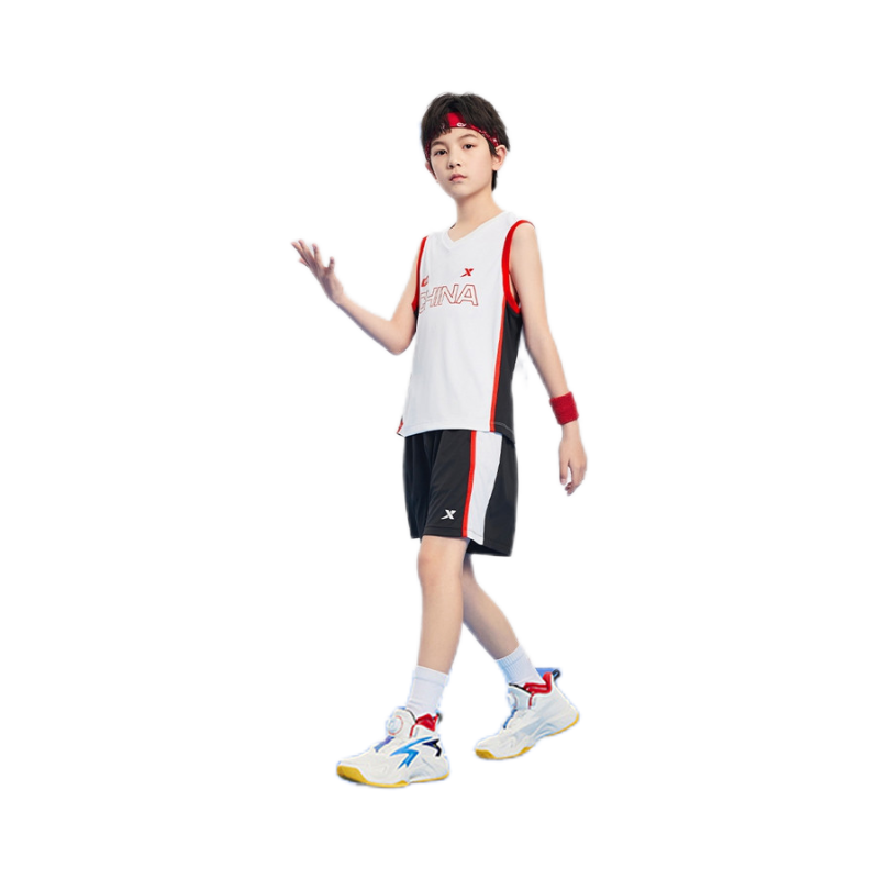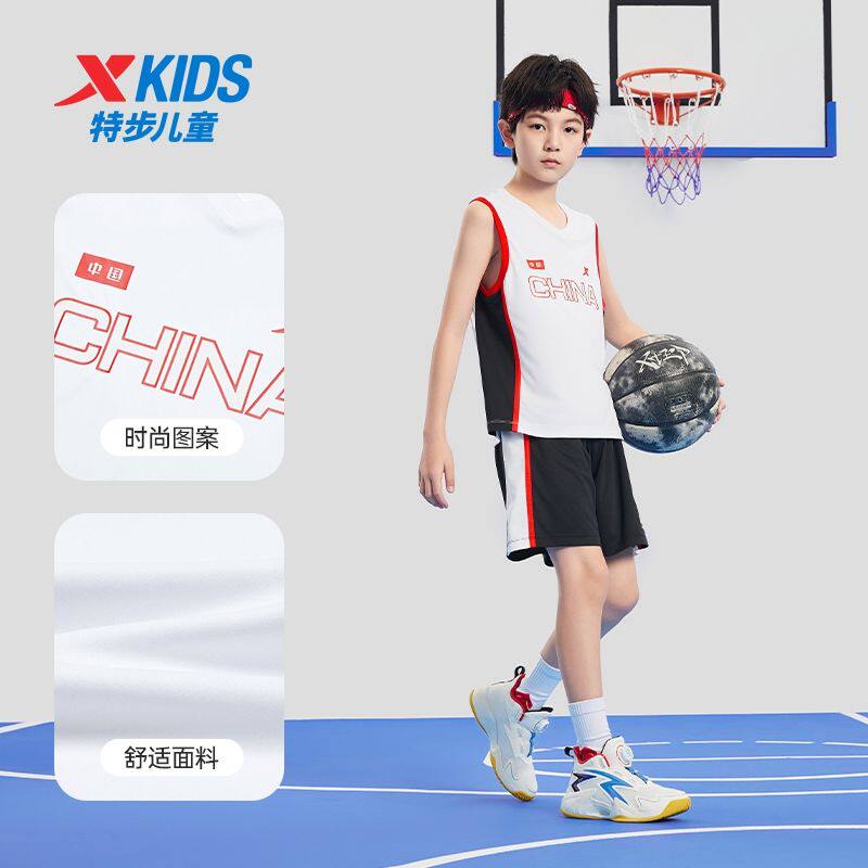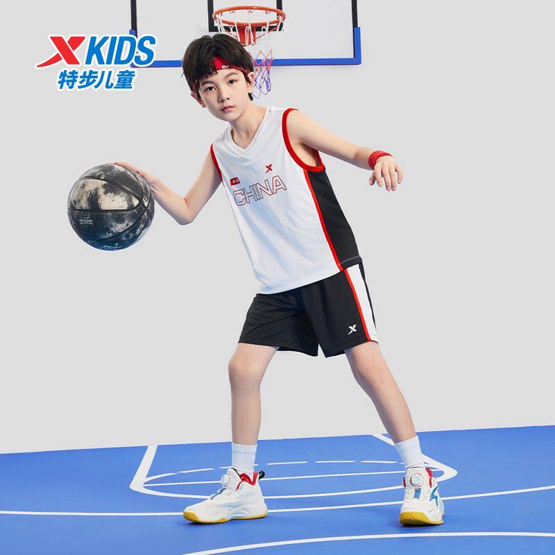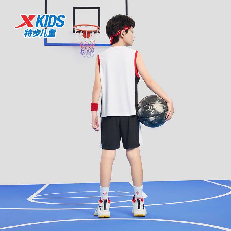 特步童装2025夏儿童篮球套装男童无袖短裤套装男童速干透气篮球服
