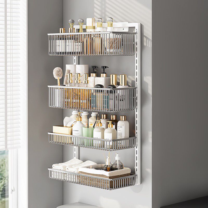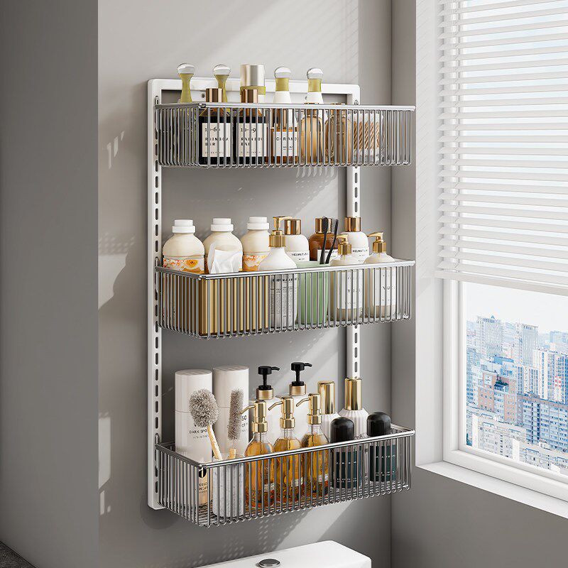 卫生间浴室墙面壁挂式上方置物架304不锈钢免打孔.多层收纳架