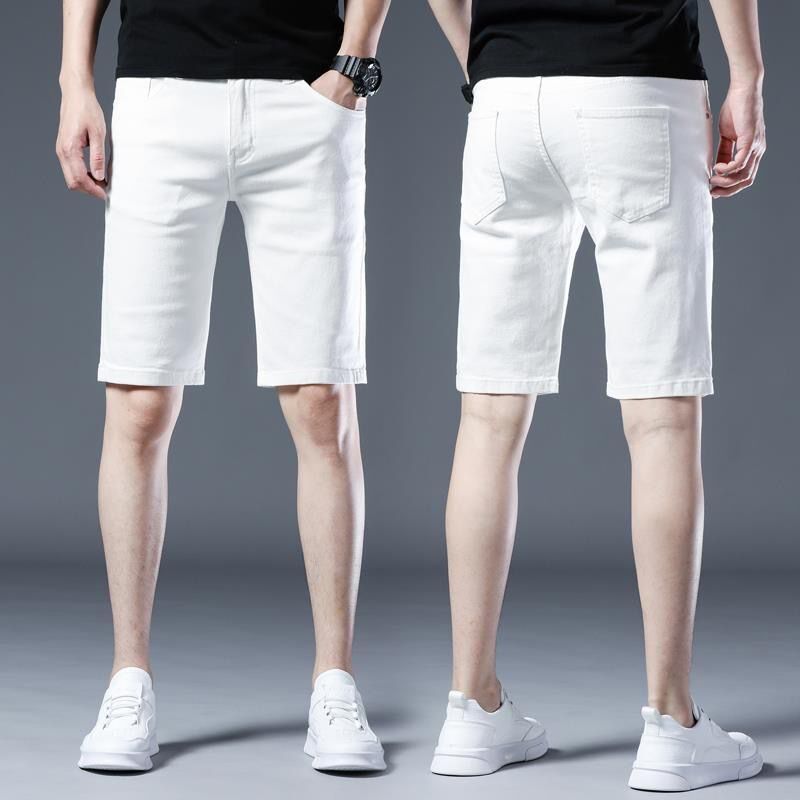2024夏季薄款修身中裤男款休A闲白色牛仔短裤弹力男士显瘦五分裤