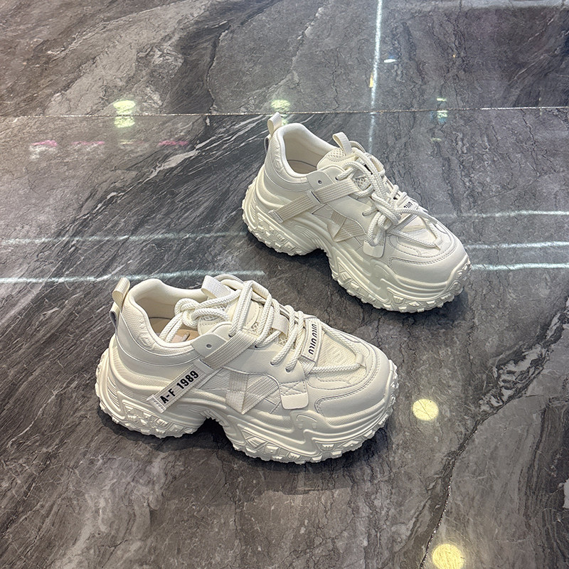 小个子厚底~真皮系带休闲老爹鞋女2025秋新款7cm增高时尚运动鞋潮