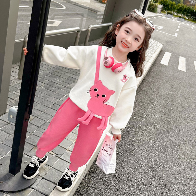女童卫衣套装春秋2025新款儿童休闲时髦春季宝宝纯棉洋气春装运动