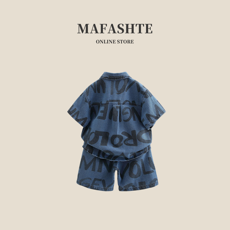 男童短袖牛仔衬衫套装夏季帅气时髦潮2026新款儿童小男孩痞帅夏装