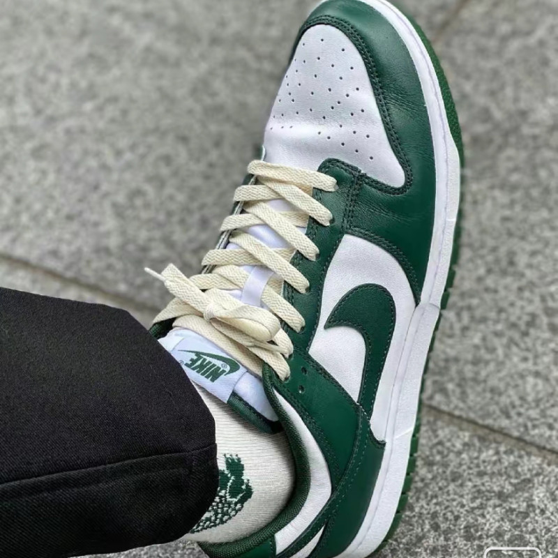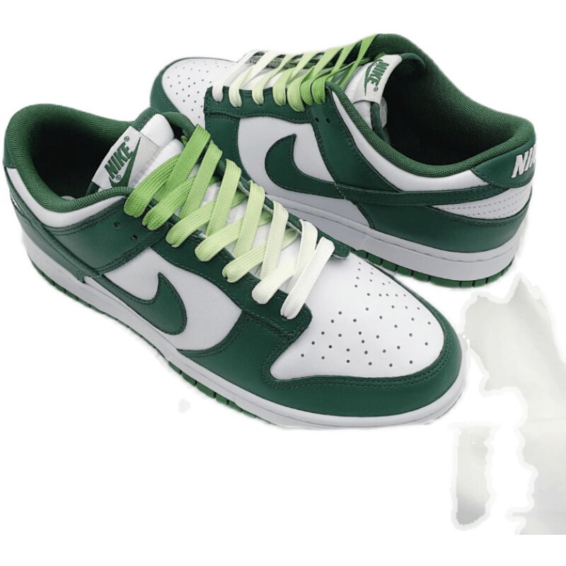 适配Nike Dunk Low TeamGreen白绿 米色做旧纯色扁形渐变绿色鞋带