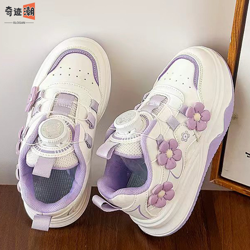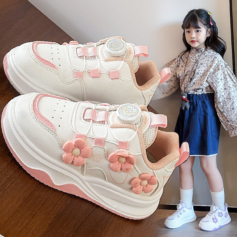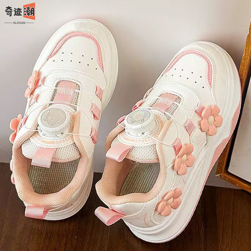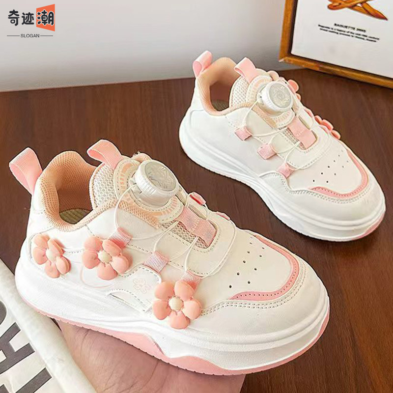 儿童运动鞋春秋2026新款学生旋钮女童小白板鞋百搭休闲女孩跑步鞋